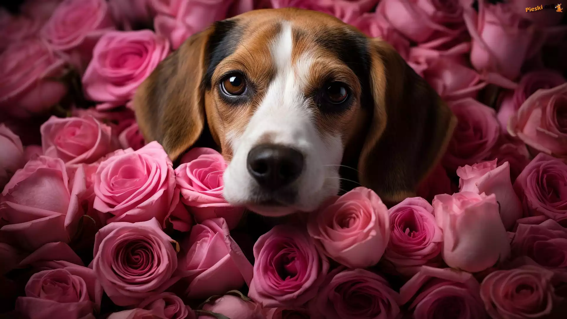 Róże, Kolorowe, Pies, Beagle, Pieski