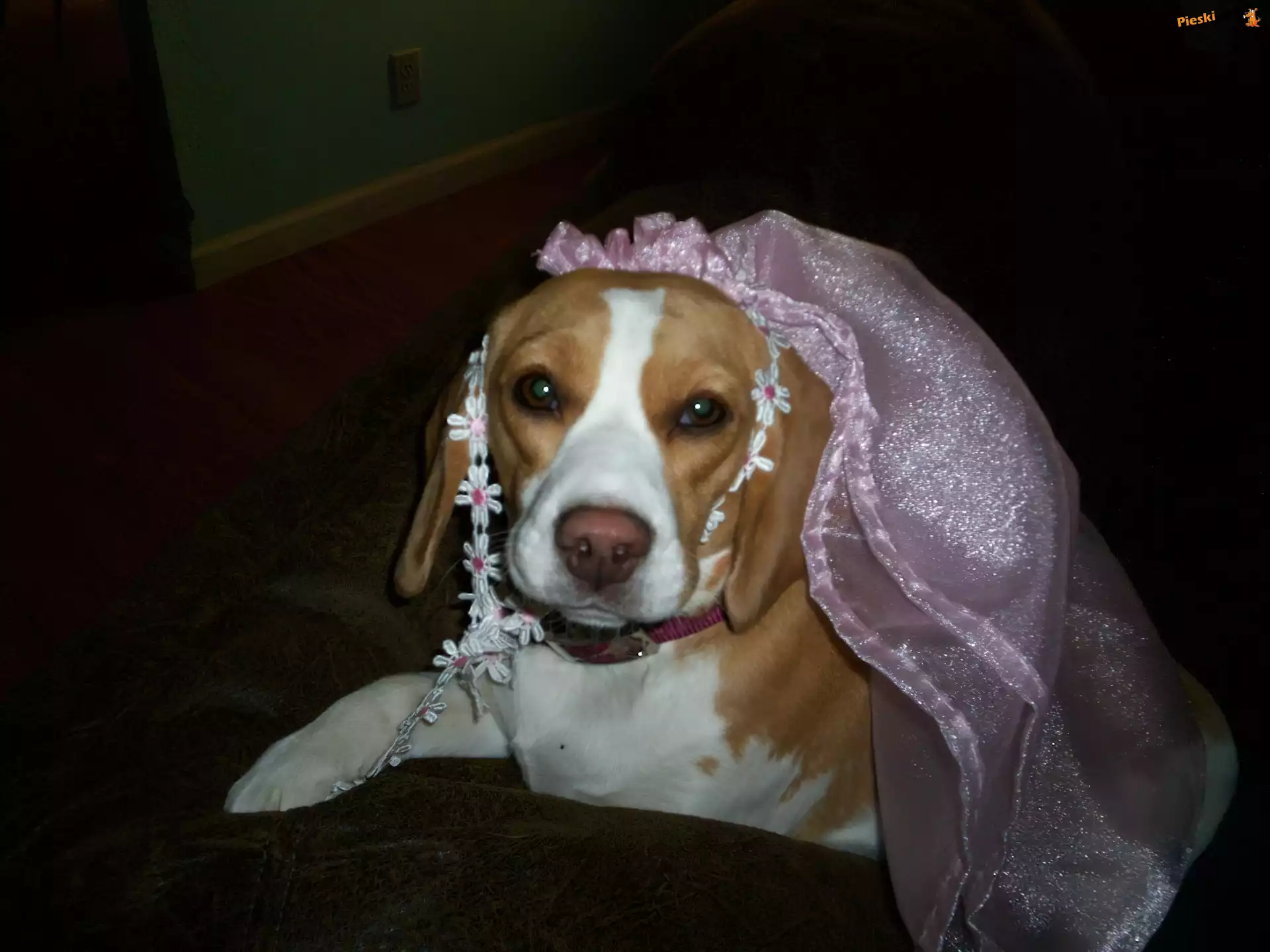 Beagle Harrier, żółte, kwiatki Beagle Harrier, różowy, welon