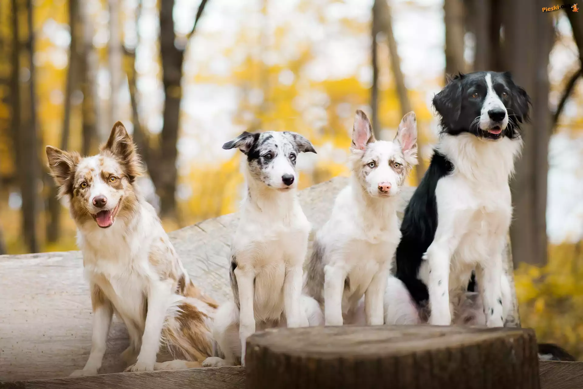Border collie, Pień, Drzewa, Pieski