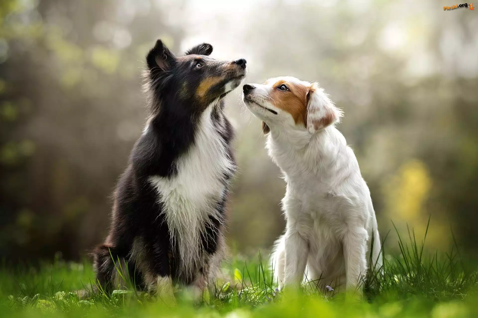 Border collie, Dwa, Psy, Trawa, Pieski