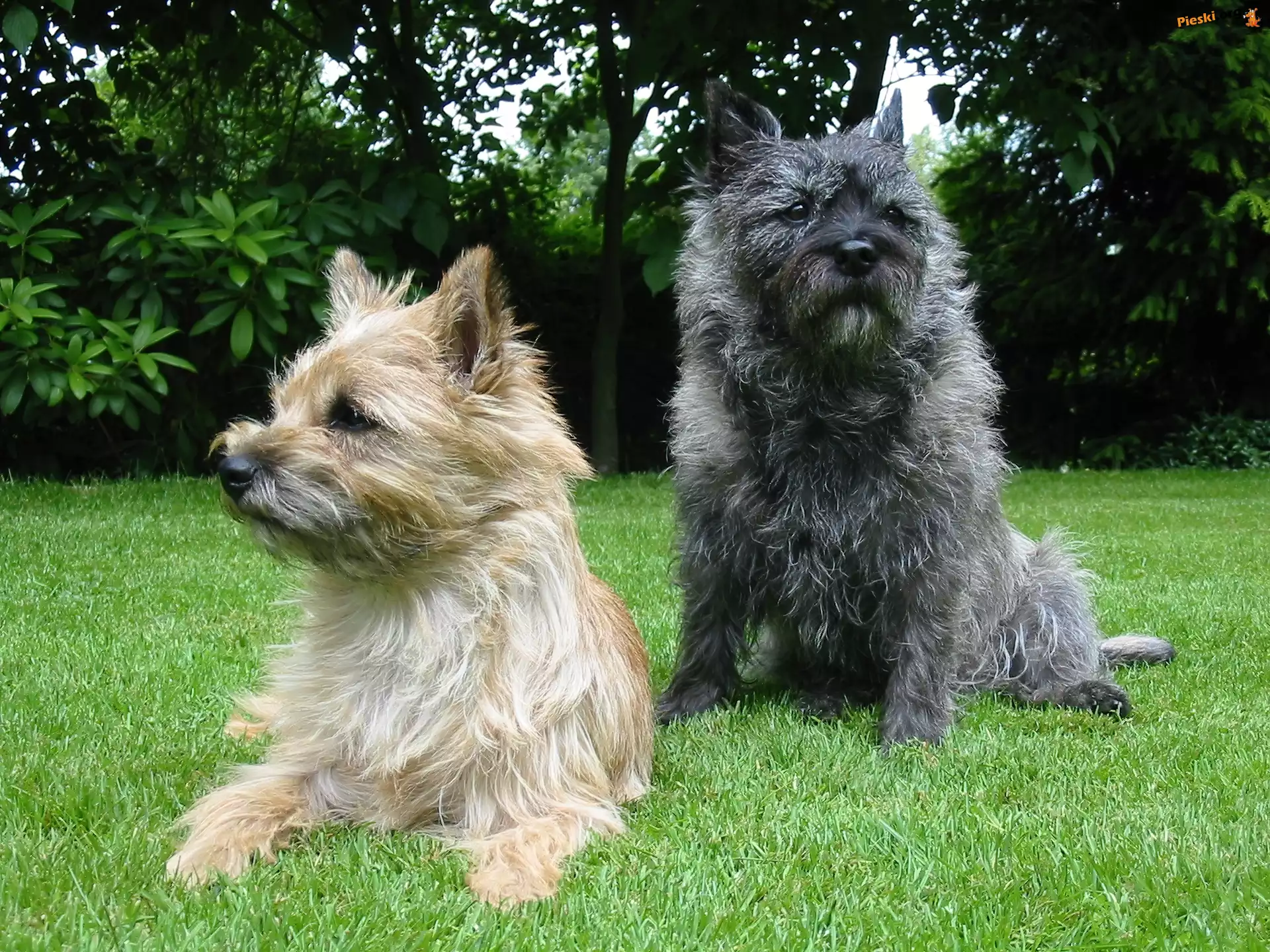 trawa, zielona, Cairn Terrier, Pieski