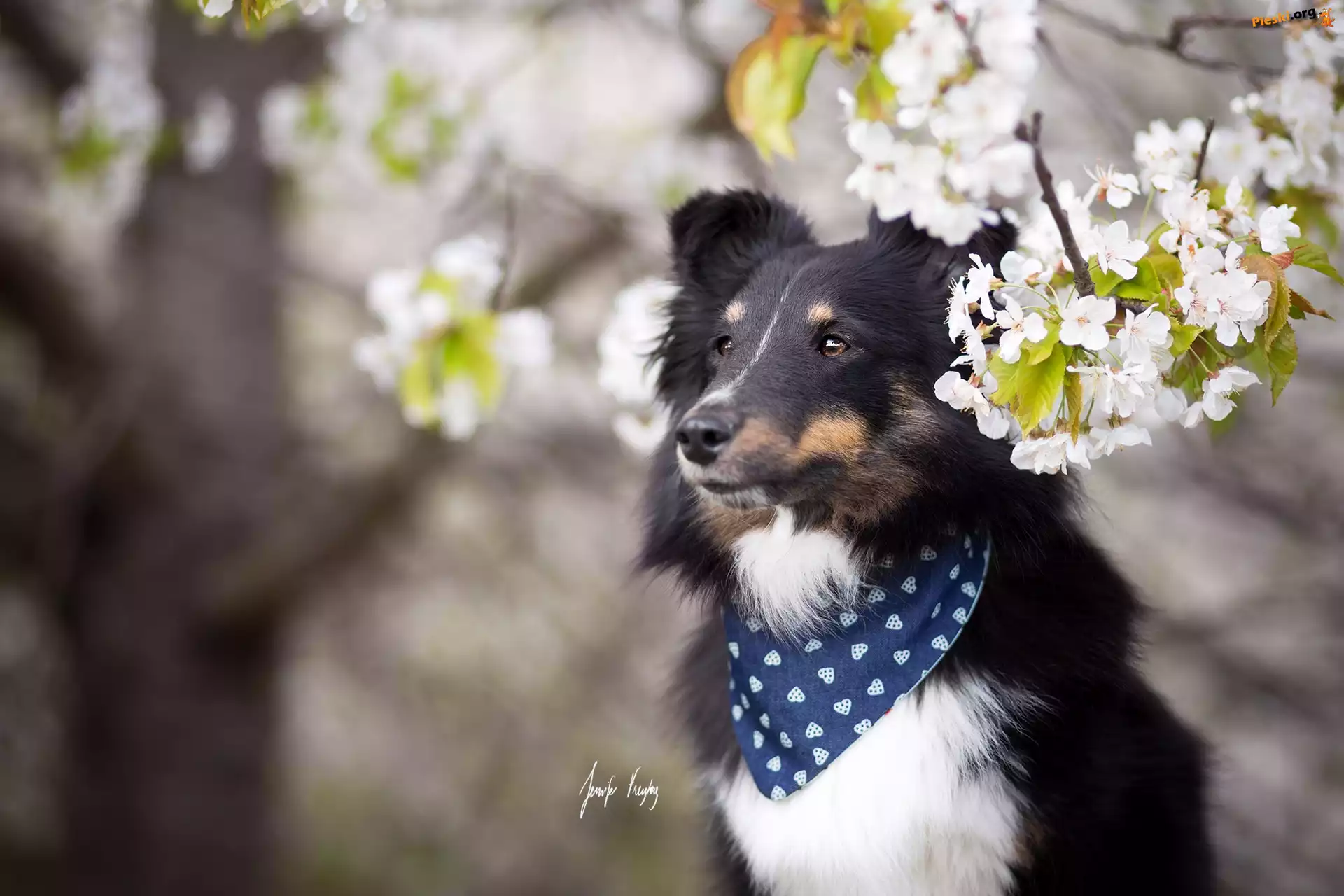 Chustka, Pies, Owczarek szetlandzki, Kwiaty, Pieski
