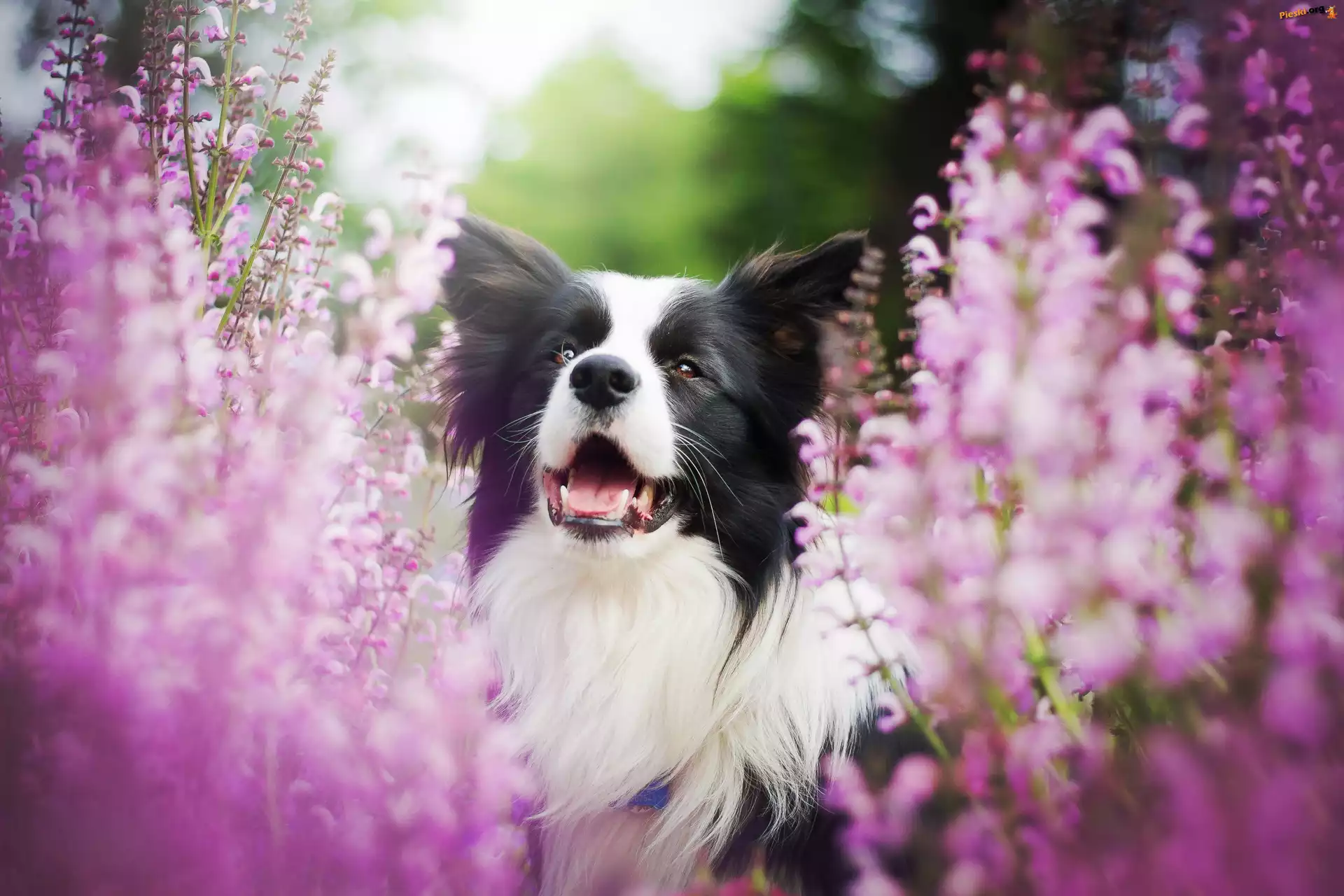 Border collie, Kwiaty, Pieski