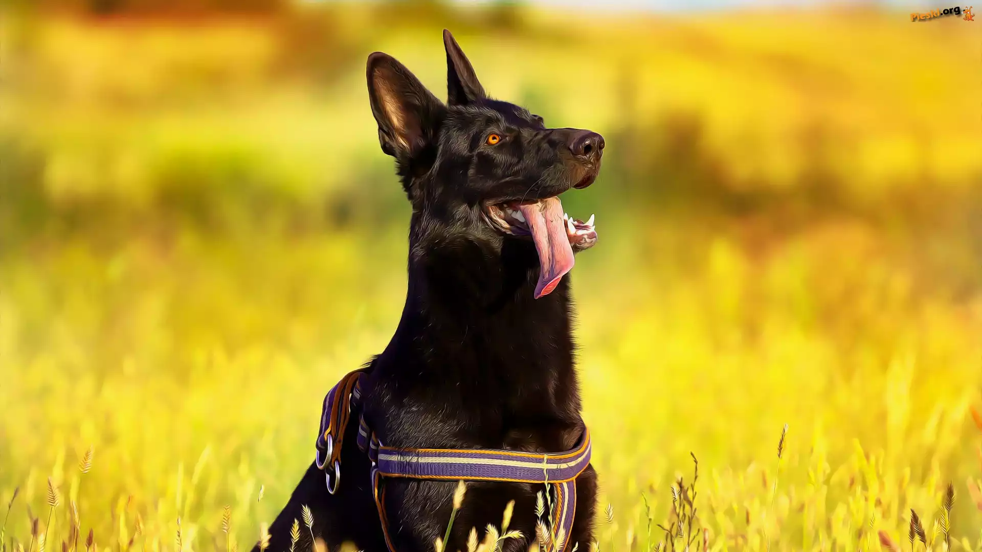 Szelki, Czarny owczarek niemiecki, Pies, Język, Grafika, Pieski
