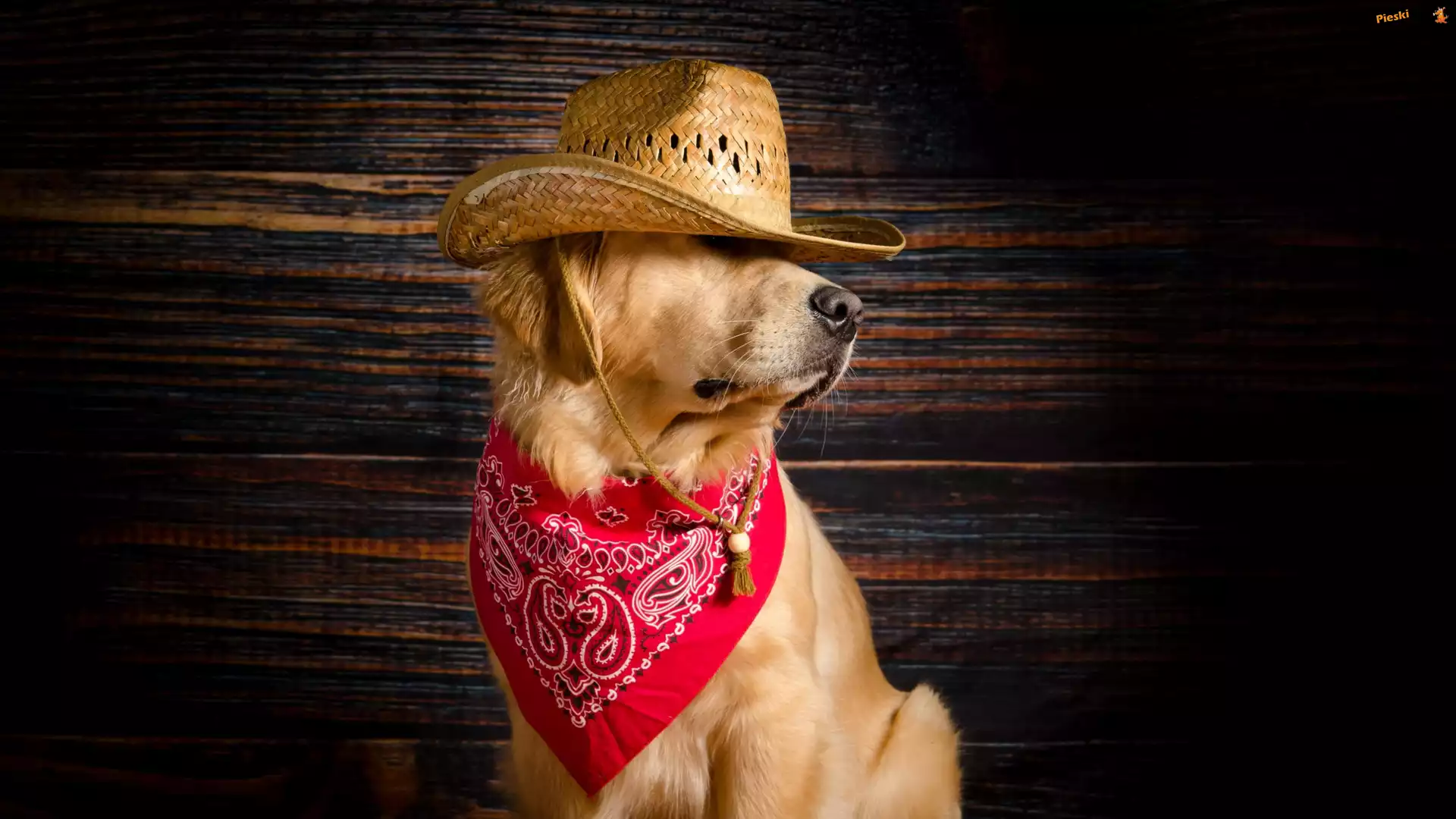 Czerwona, Golden retriver, Pies, Kapelusz, Apaszka, Pieski
