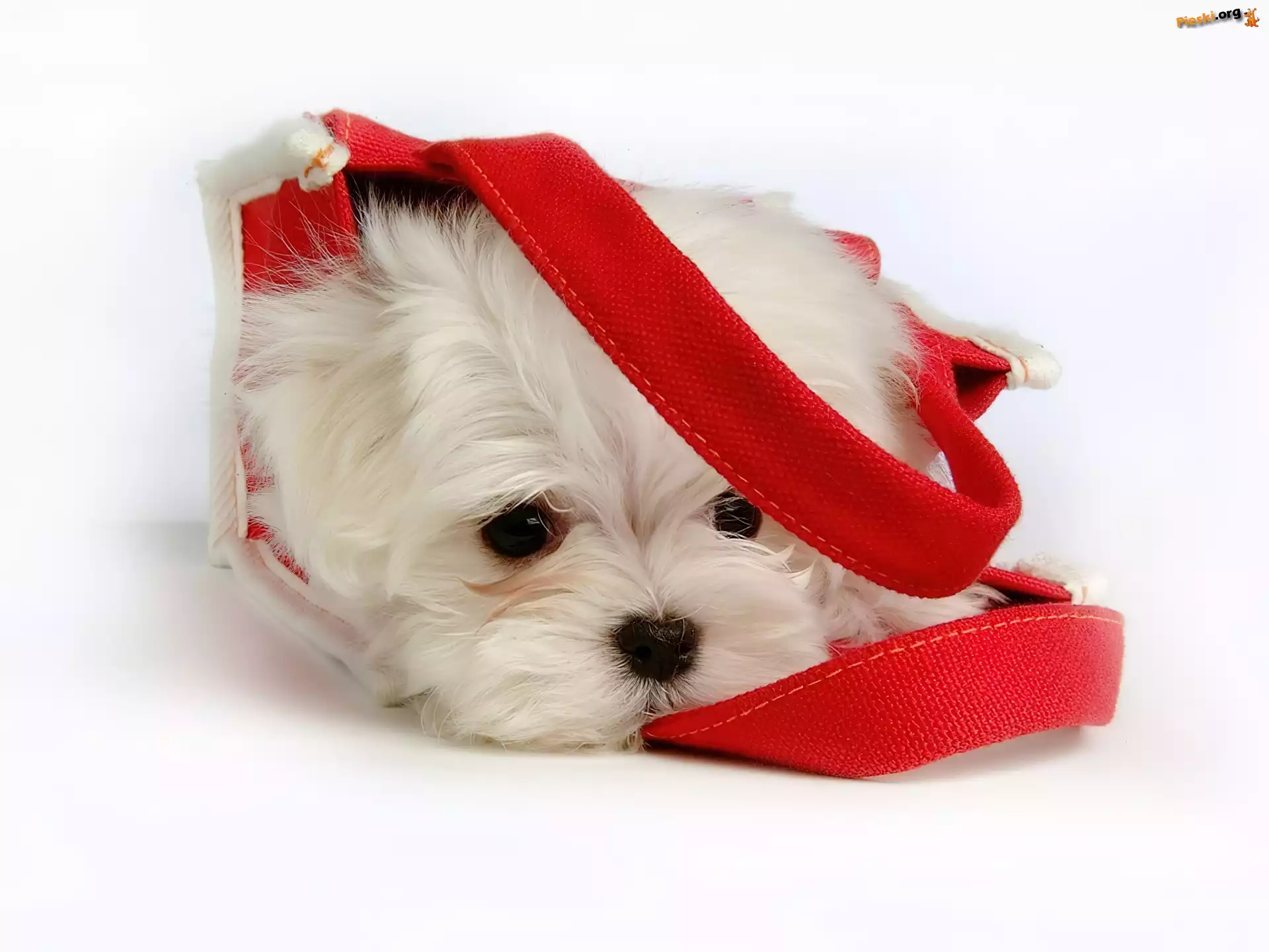 Czerwona, Biały, Szczeniaczek, Torba, Pieski