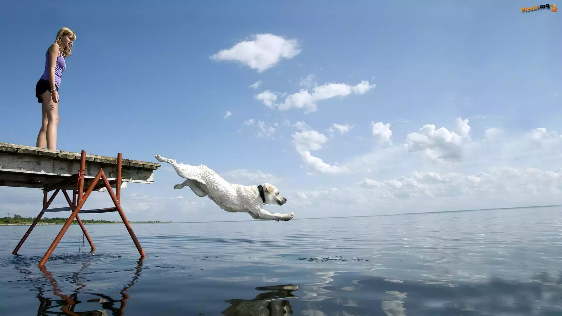 Skok, Jeziora, Kobieta, Do, Pies