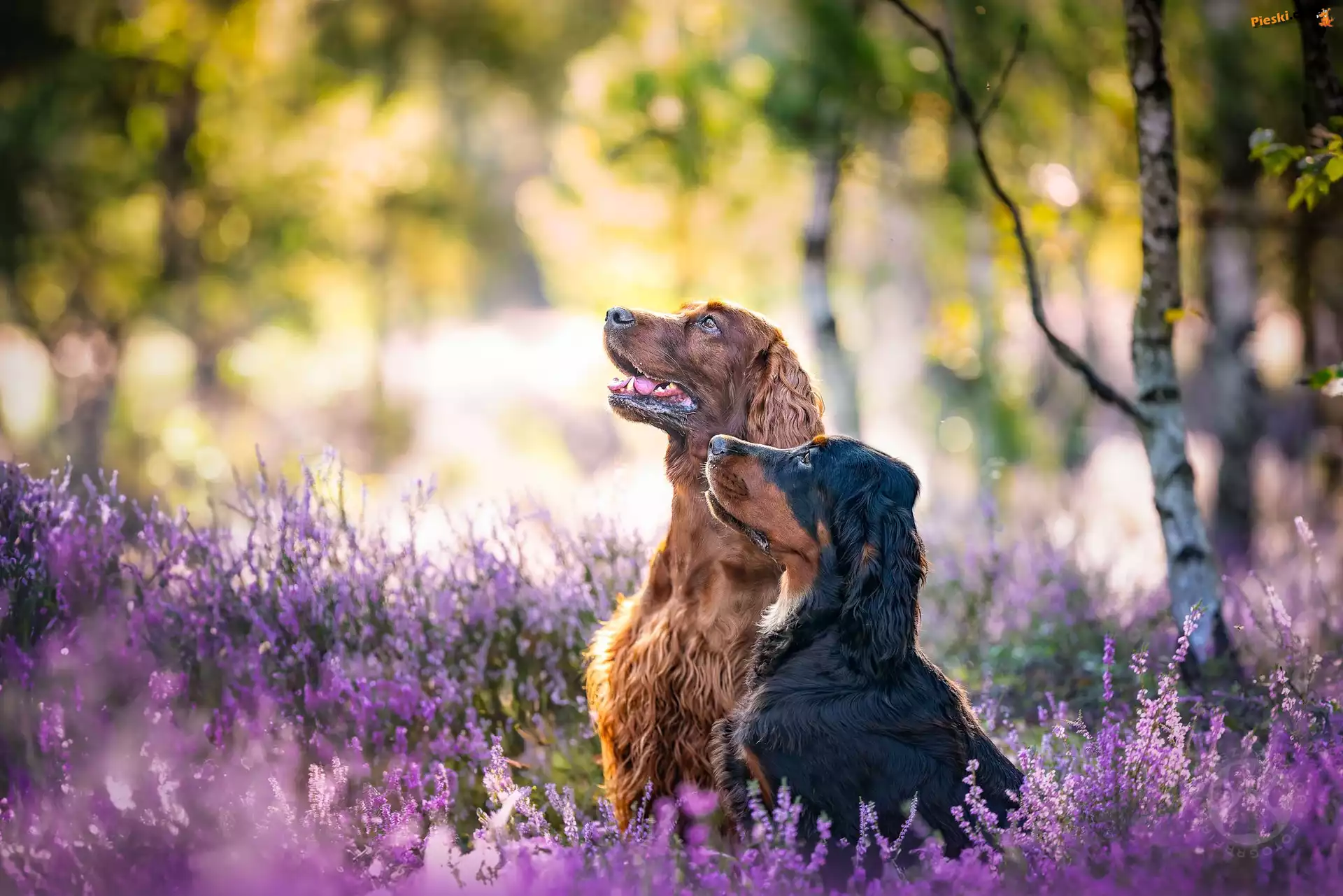 Seter irlandzki, Wrzosy, Dwa, Seter szkocki, Psy, Pieski