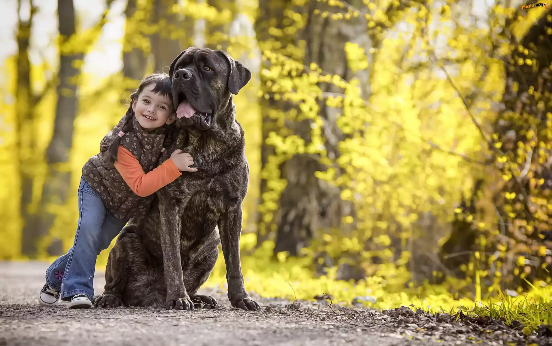 Dziecko, Bullmastiff, Pręgowany, Dziewczynka, Pies, Alejka