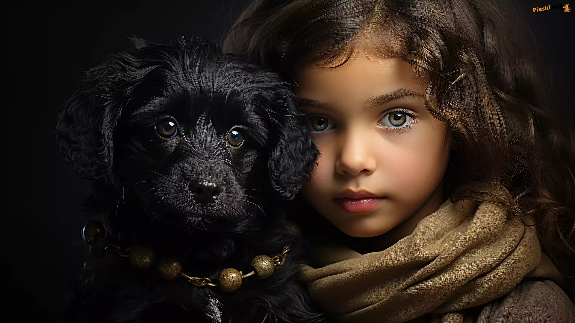 Pies, Długie, Włosy, Dziewczynka, Czarny, Szal, Pieski