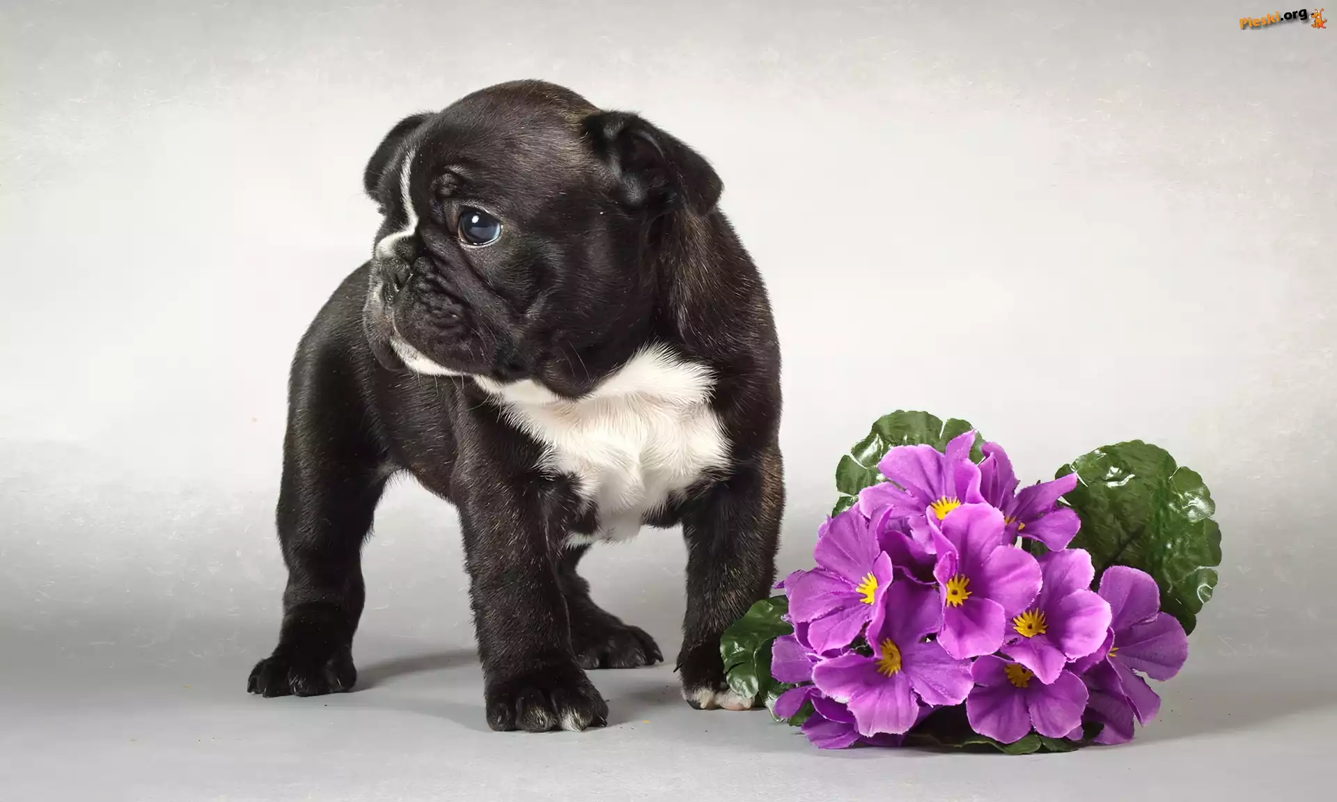 Szczeniak, Prymule, Czarny, Fioletowe, Pies, Pieski
