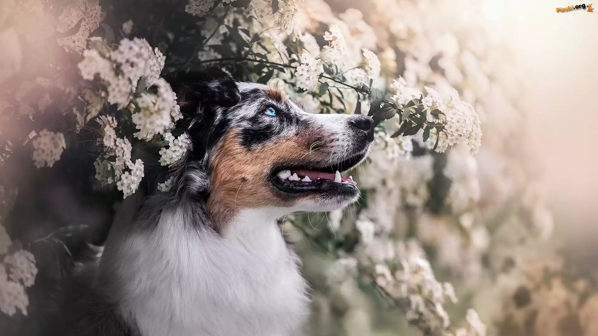 Kwiaty, Gałęzie, Pies, Owczarek australijski