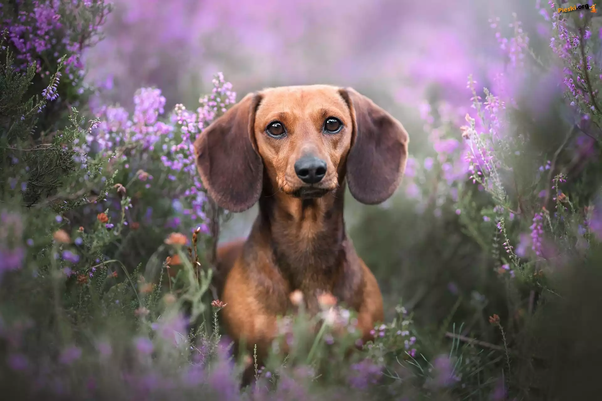 Jamnik, Brązowy, Pies, Wrzosy, Pieski