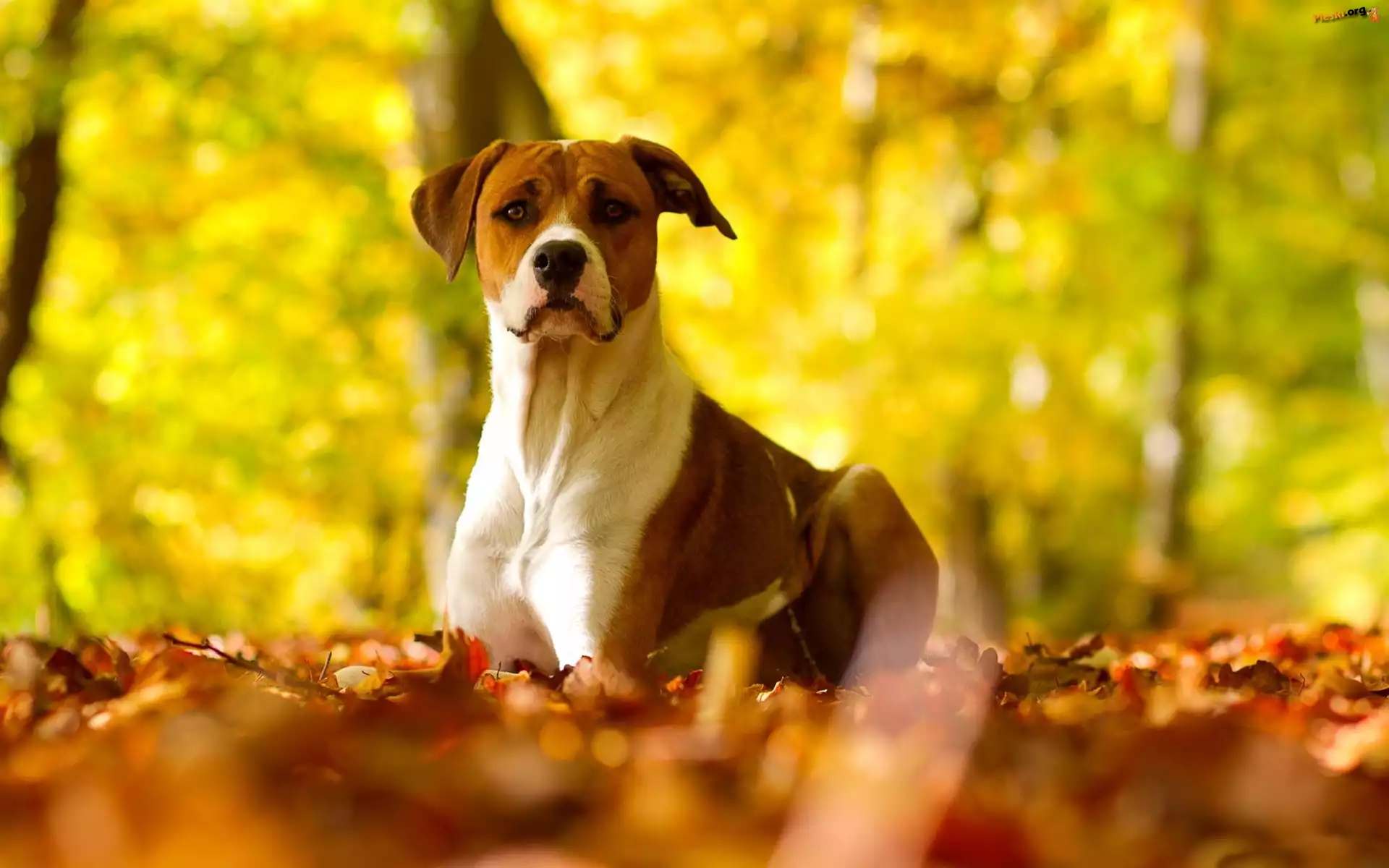 Pit Bull Terrier, Jesienne, Liście