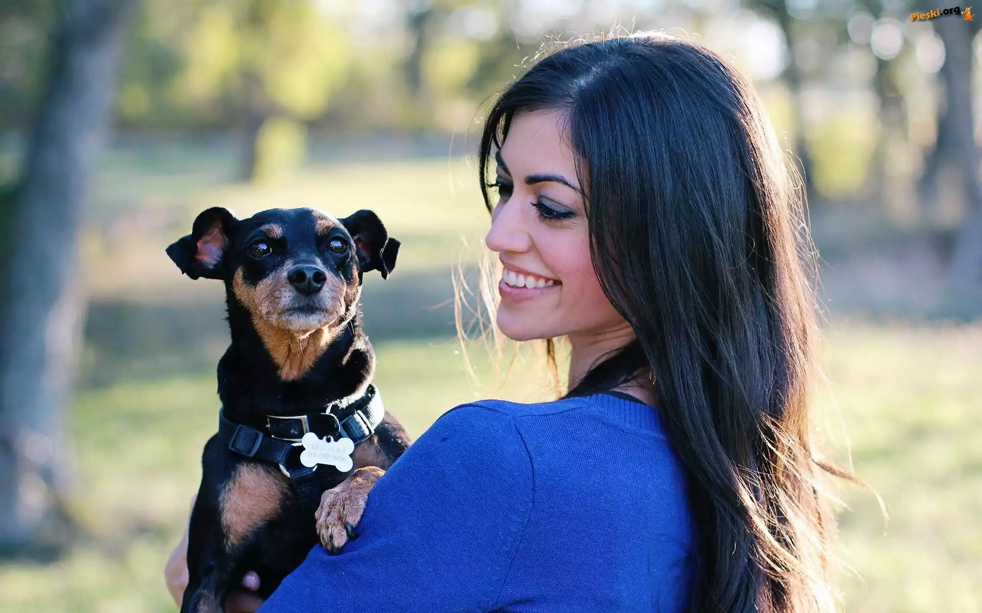 Uśmiechnięta, Kobieta, Piesek, Pieski