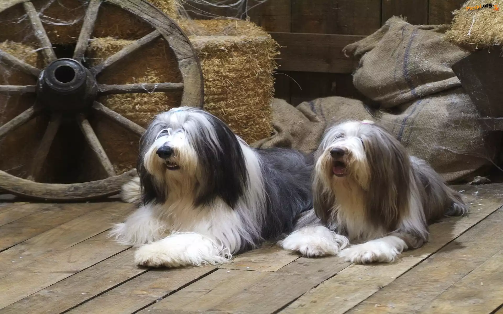 Koło, Dwa, Psy, Słoma, Pieski
