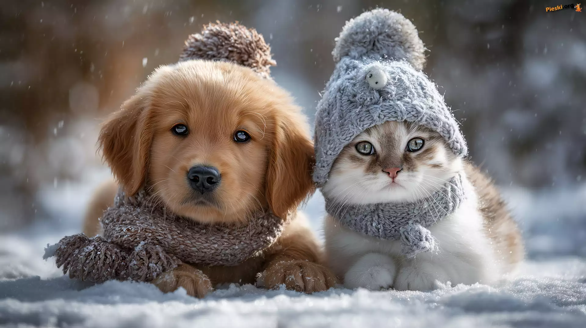 Grafika AI, Pies, Kot, Szczeniak, Czapka, Szaliki