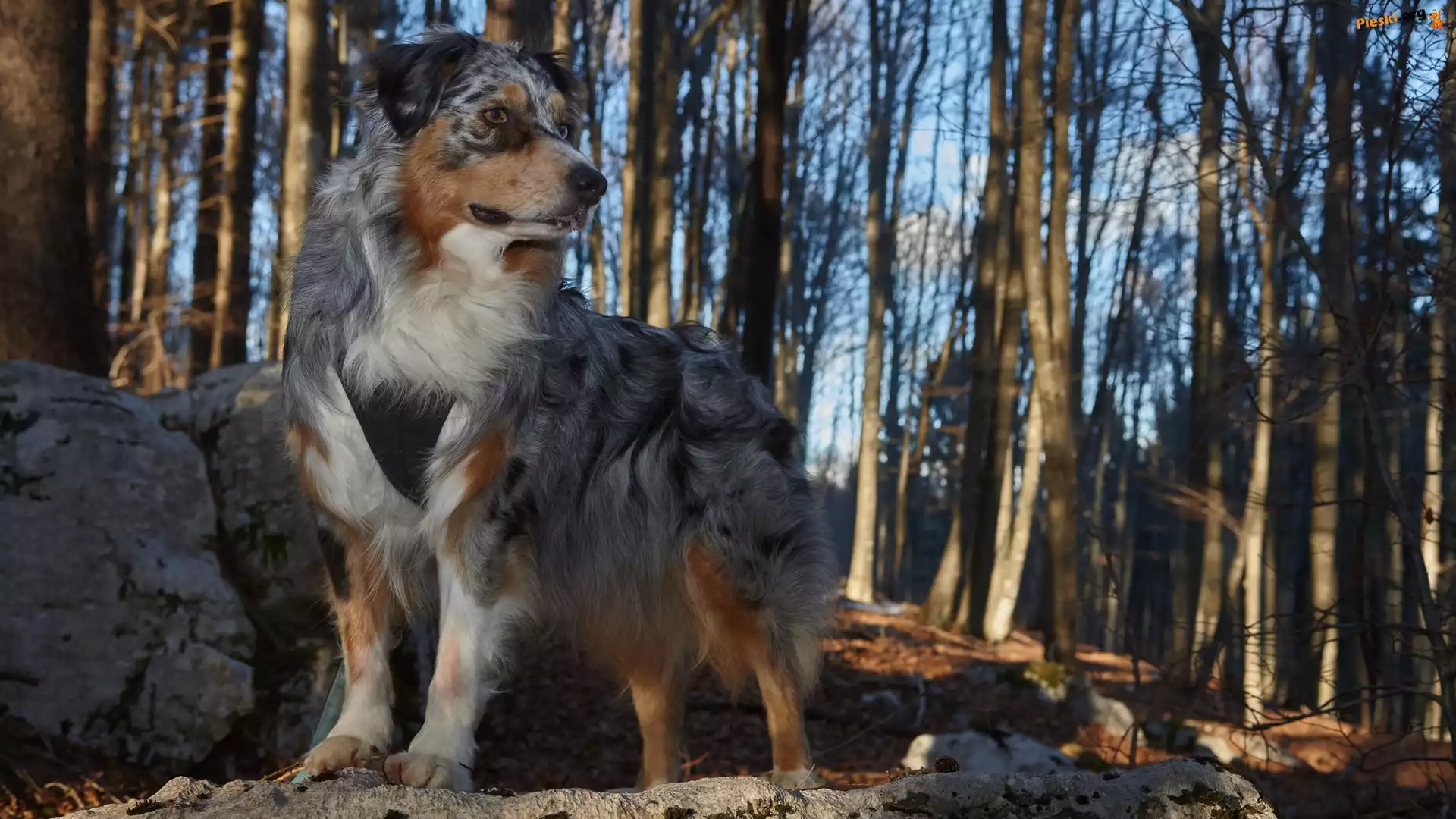 Las, Pies, Owczarek australijski, Drzewa, Pieski