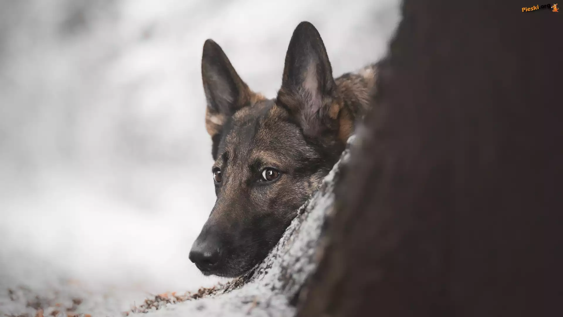 Mordka, Pies, Owczarek niemiecki, Drzewo, Pieski
