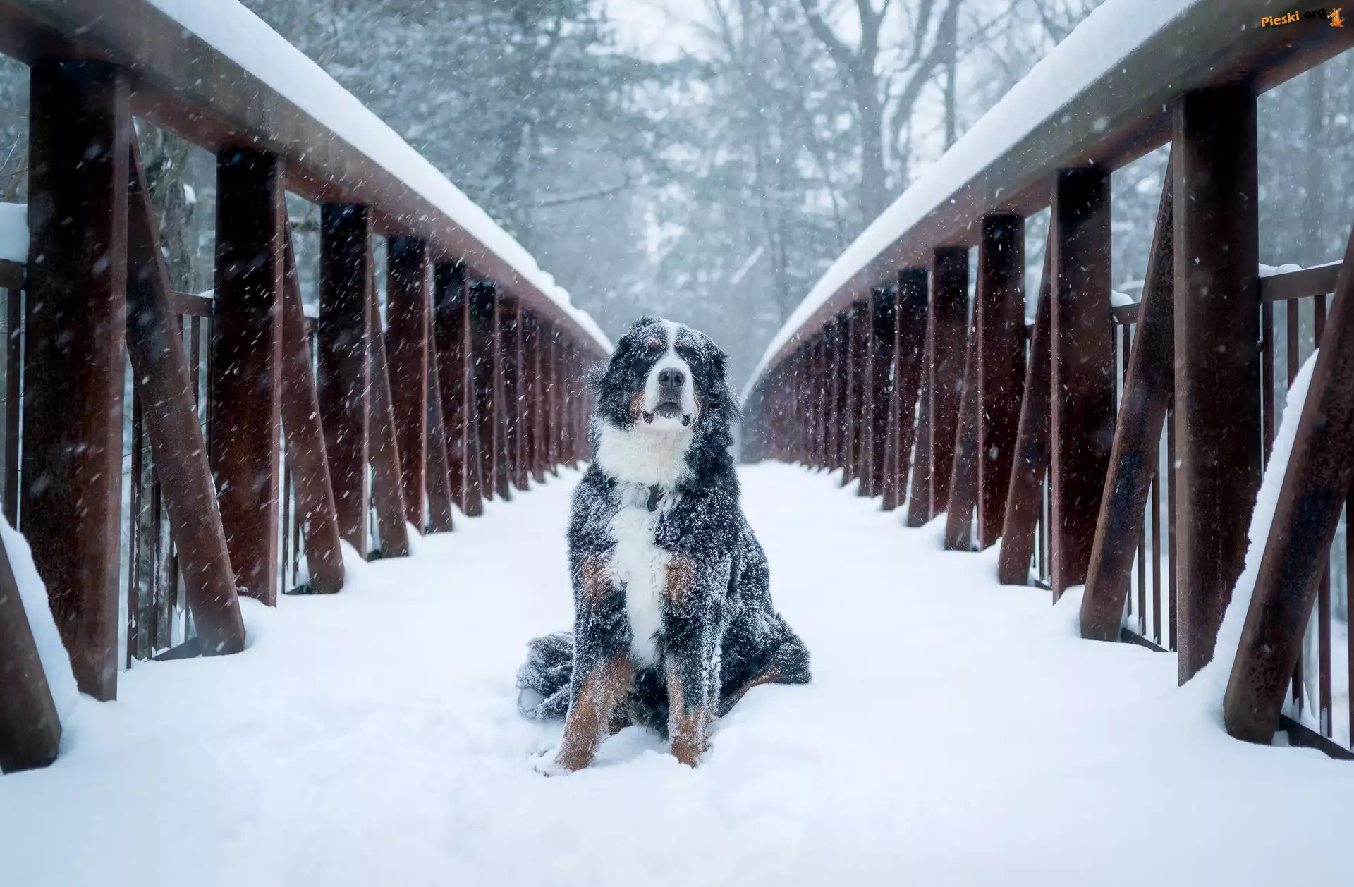 Most, Pies, Berneński pies pasterski, Śnieg, Pieski