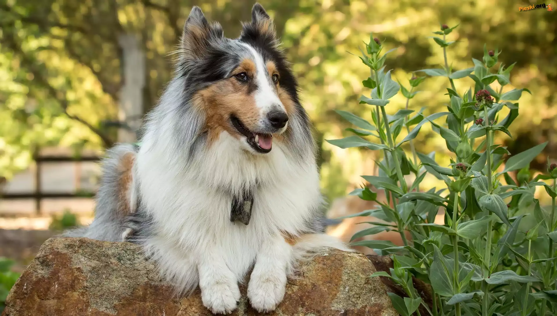 Rośliny, Kamień, Pies, Owczarek szkocki długowłosy