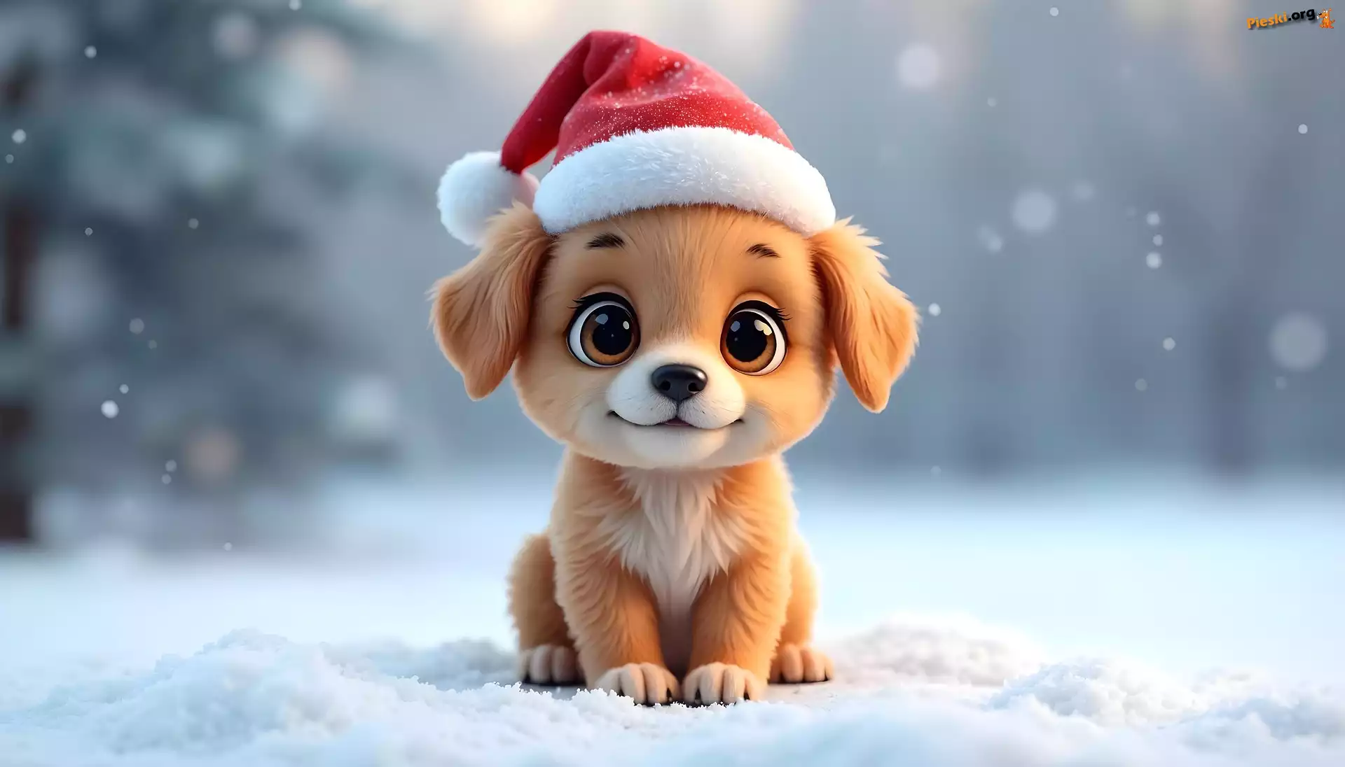 Grafika, Szczeniak, Czapka, Pies, Śnieg, Mikołaja