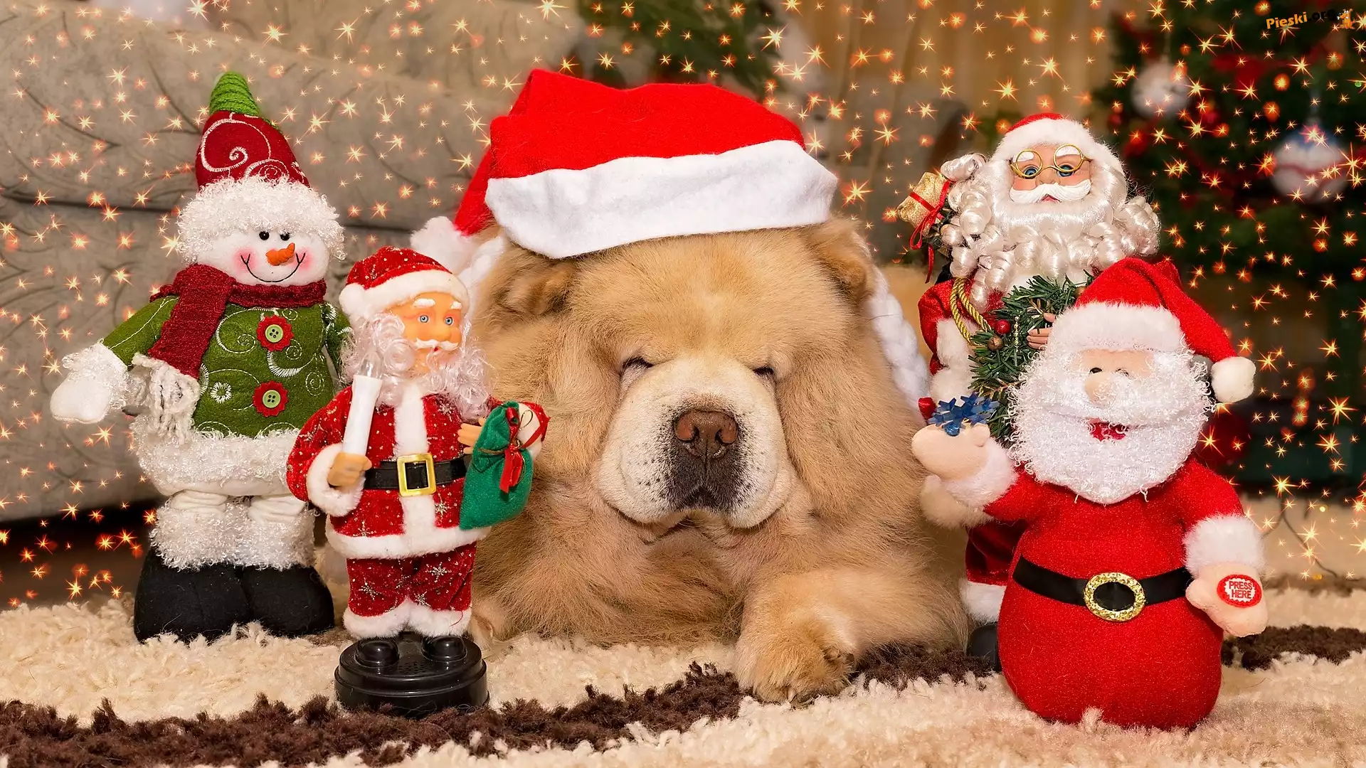Dekoracje, Pies, Figurki, Czapka, Chow chow, Mikołaja, Mikołaje, Pieski