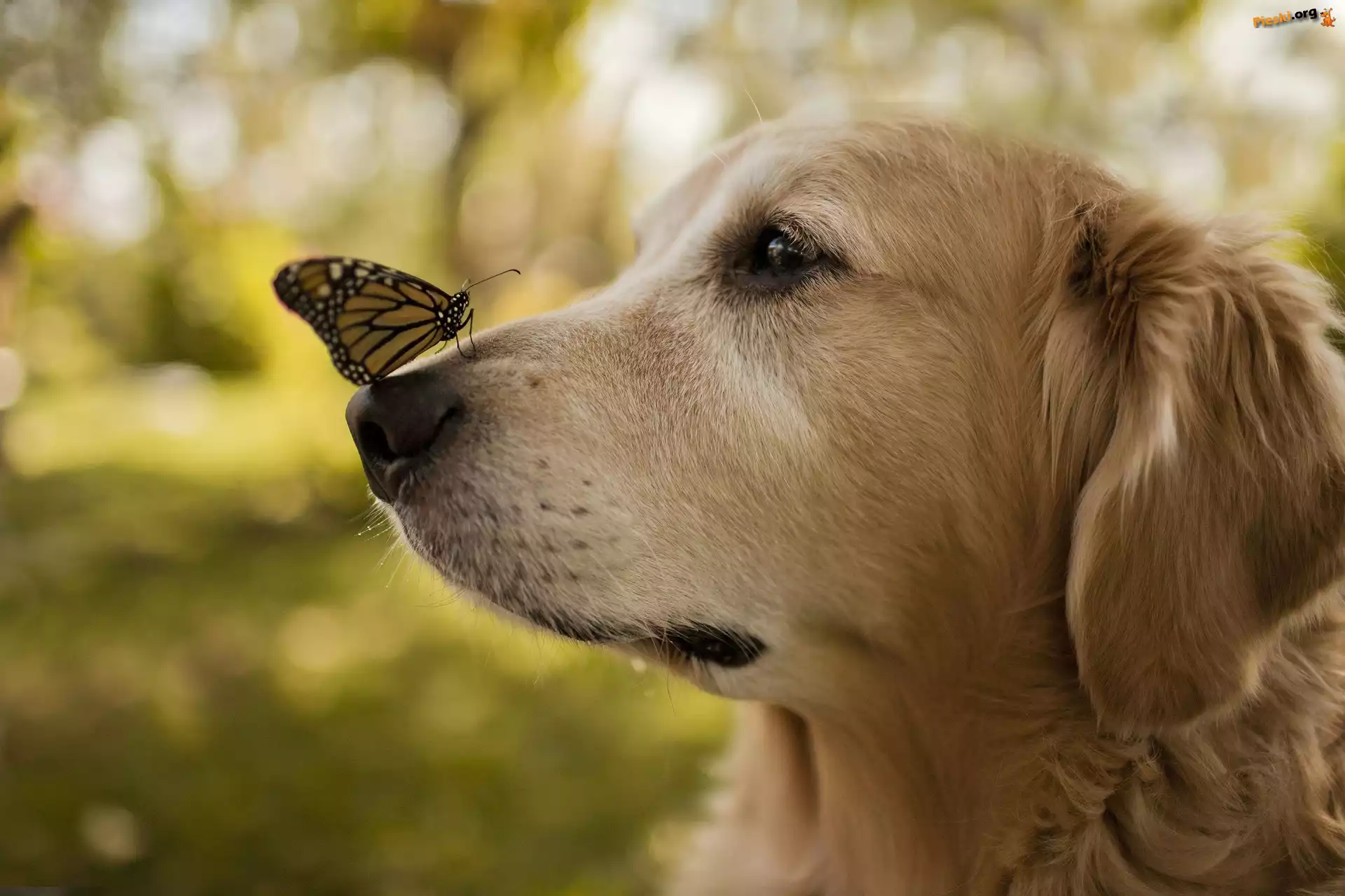 Pies, Golden retriever, Motyl, Pieski