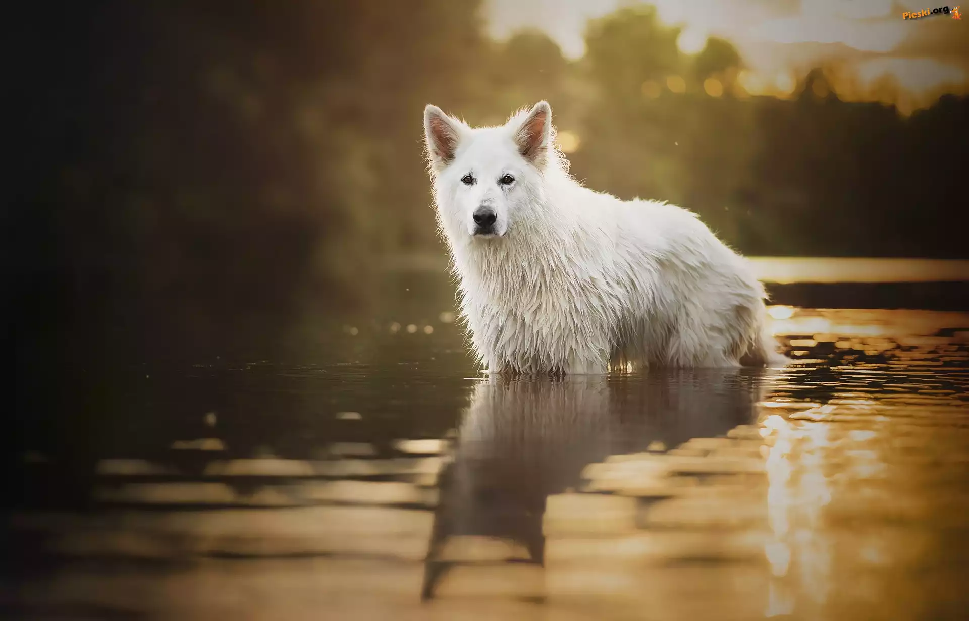 Pies, Woda, Biały Owczarek Szwajcarski, Pieski