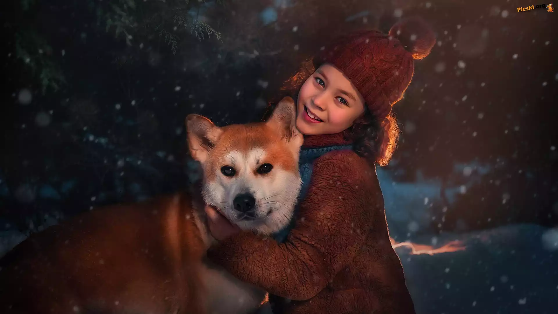 Pies, Uśmiech, Dziewczynka, Czapka, Shiba inu, Pieski
