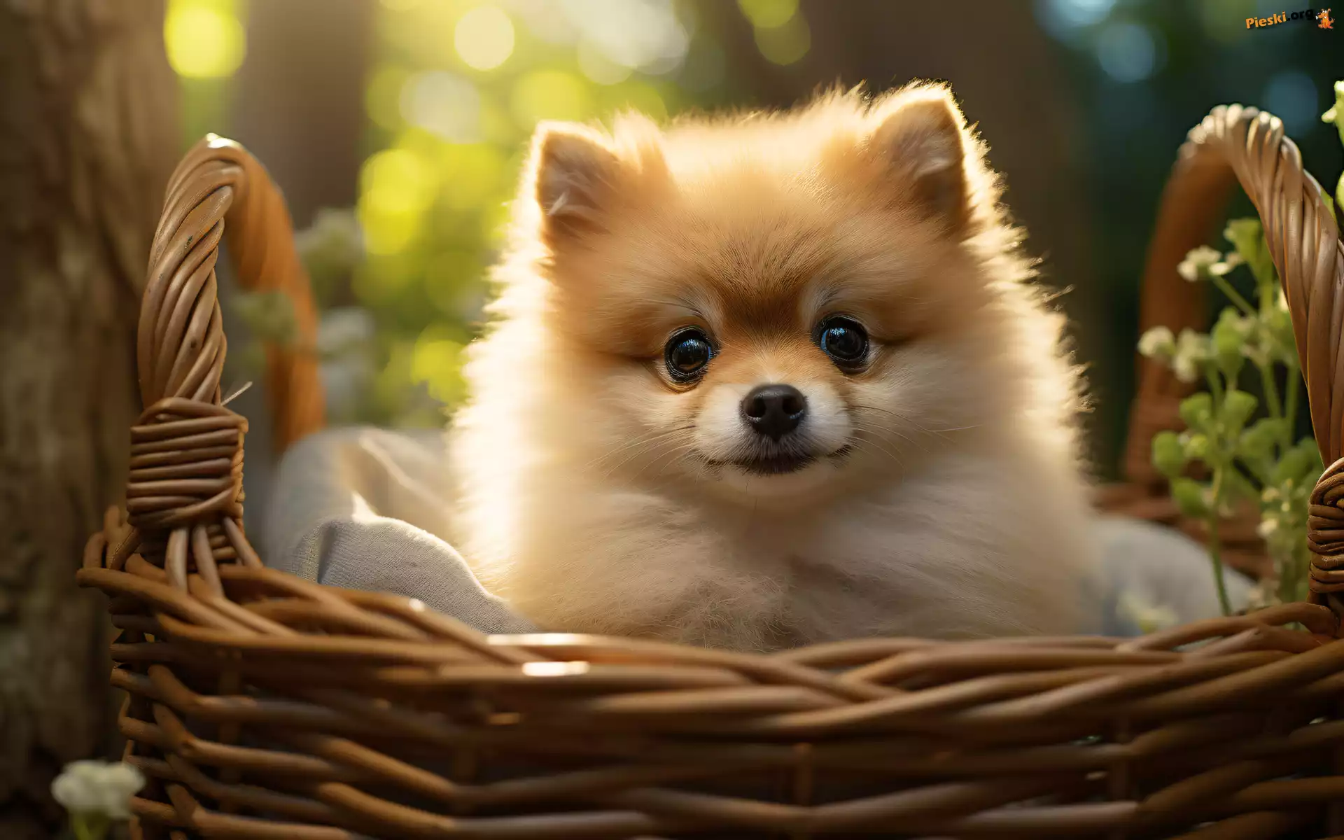 Szpic miniaturowy, Koszyk, Pies, Mordka, Szczeniak