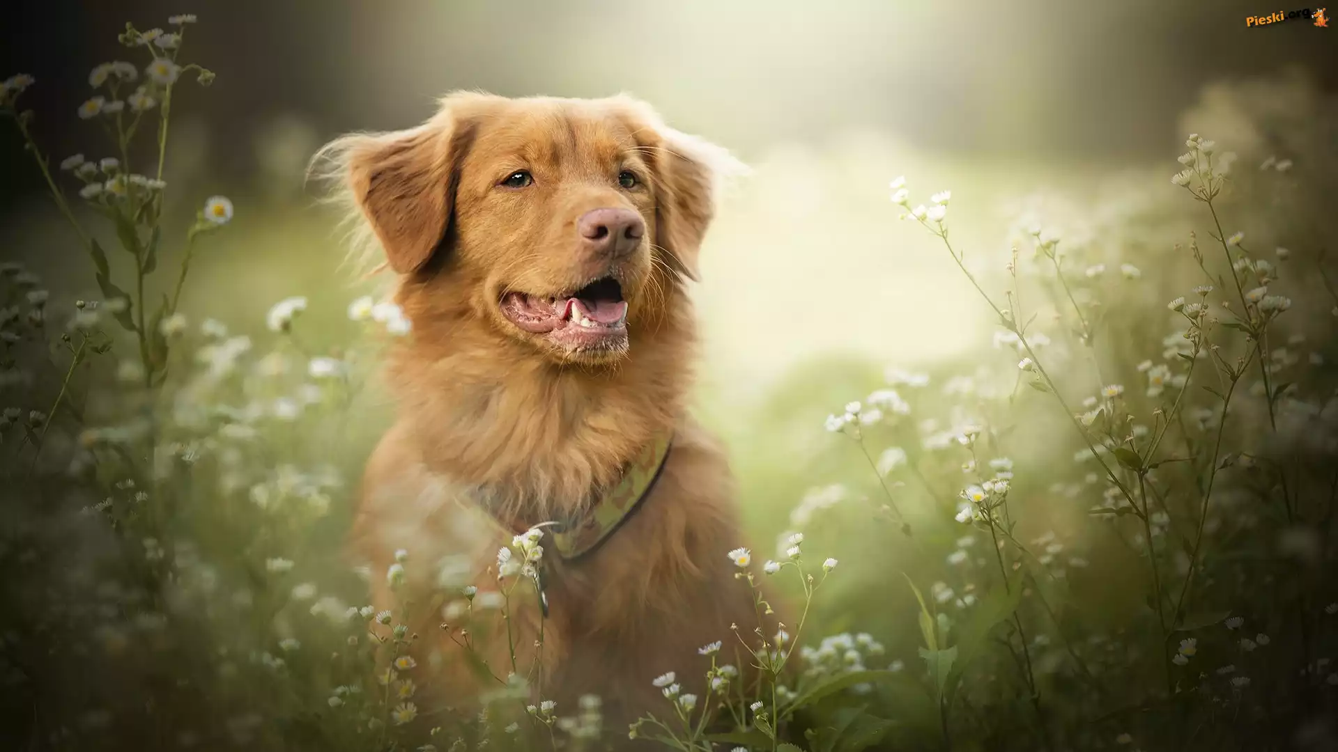 Kwiaty, Retriever z Nowej Szkocji, Pies, Mordka, Przymiotno, Pieski
