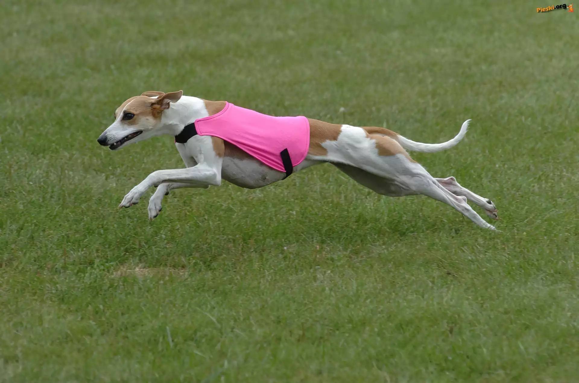 Whippet, różowe, ubranko Whippet, zielone, liście Whippet, zielona, trawa Whippet
