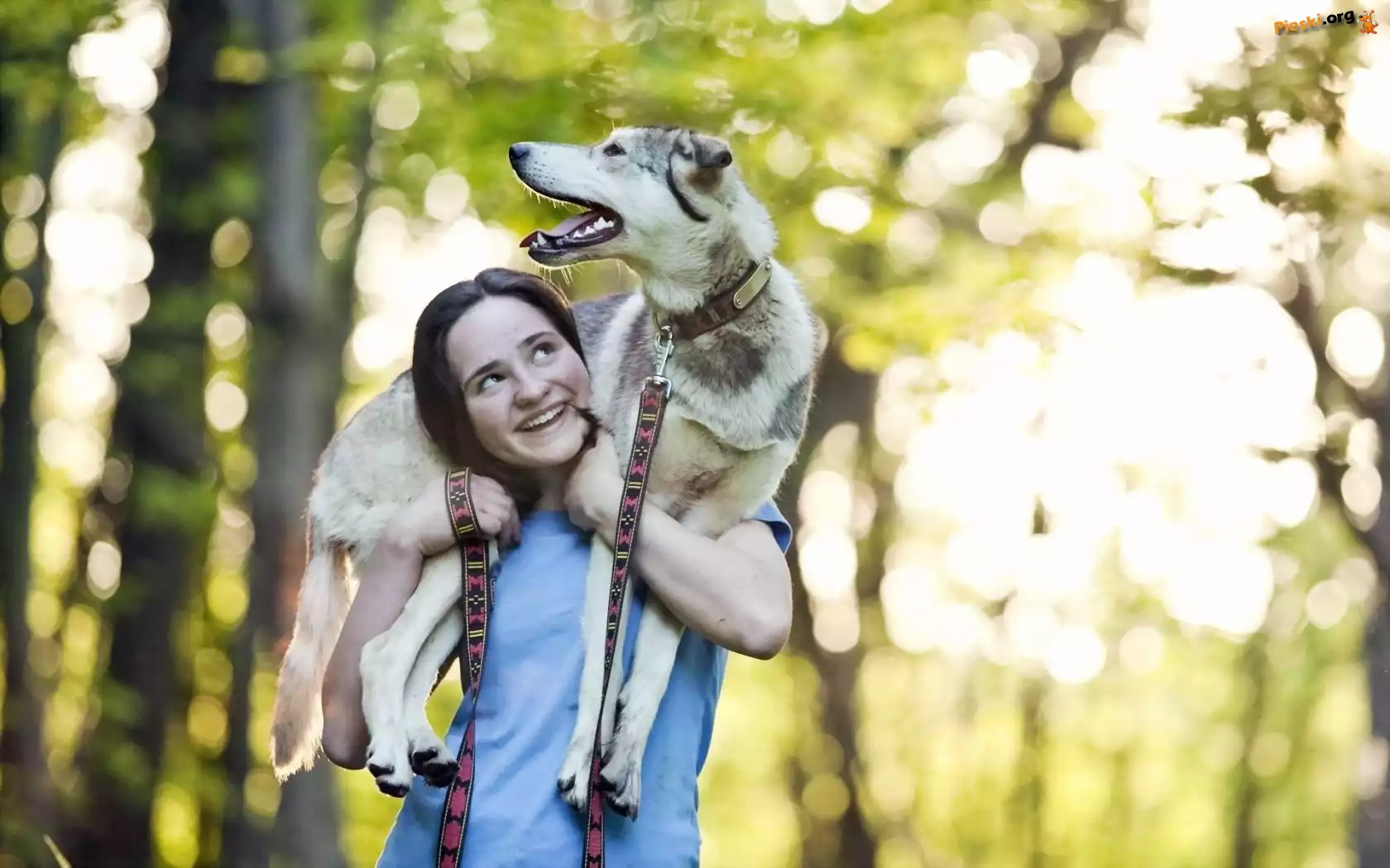 Smycz, Dziewczyna, Pies, Park, Pieski