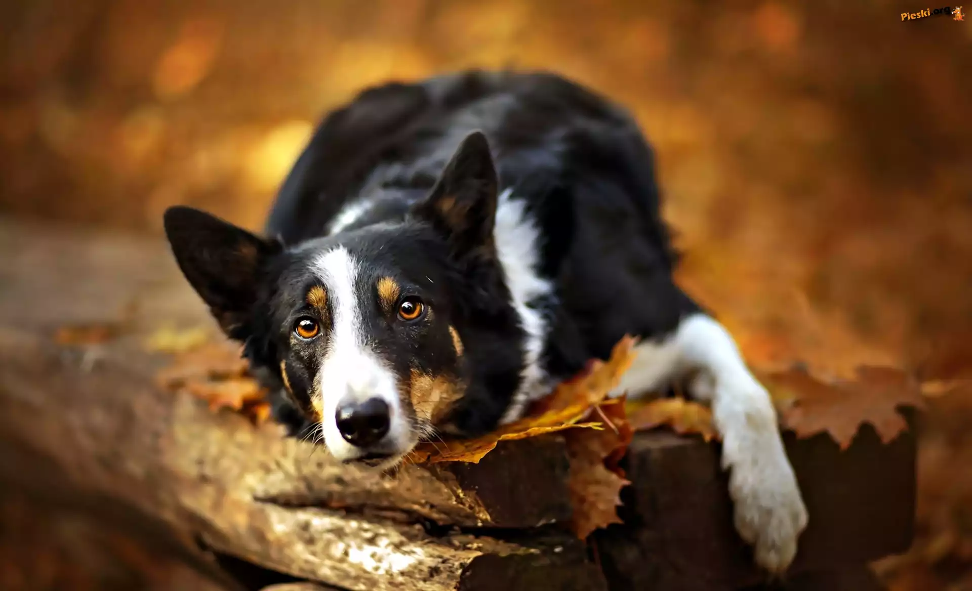 Spojrzenie, Pies, Morda, Liście, Pieski