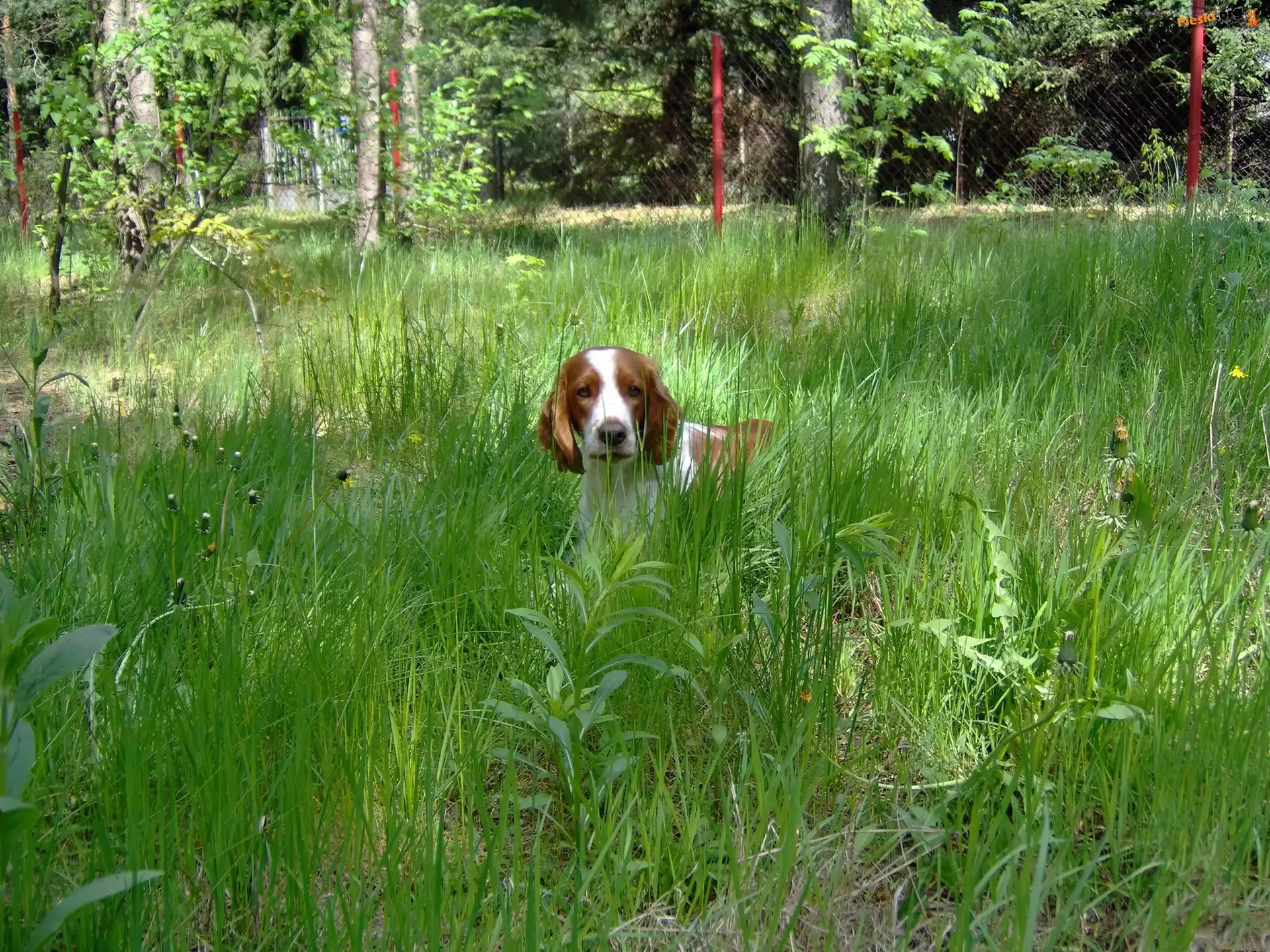 trawa, wysoka, Springer spaniel walijski, Pieski