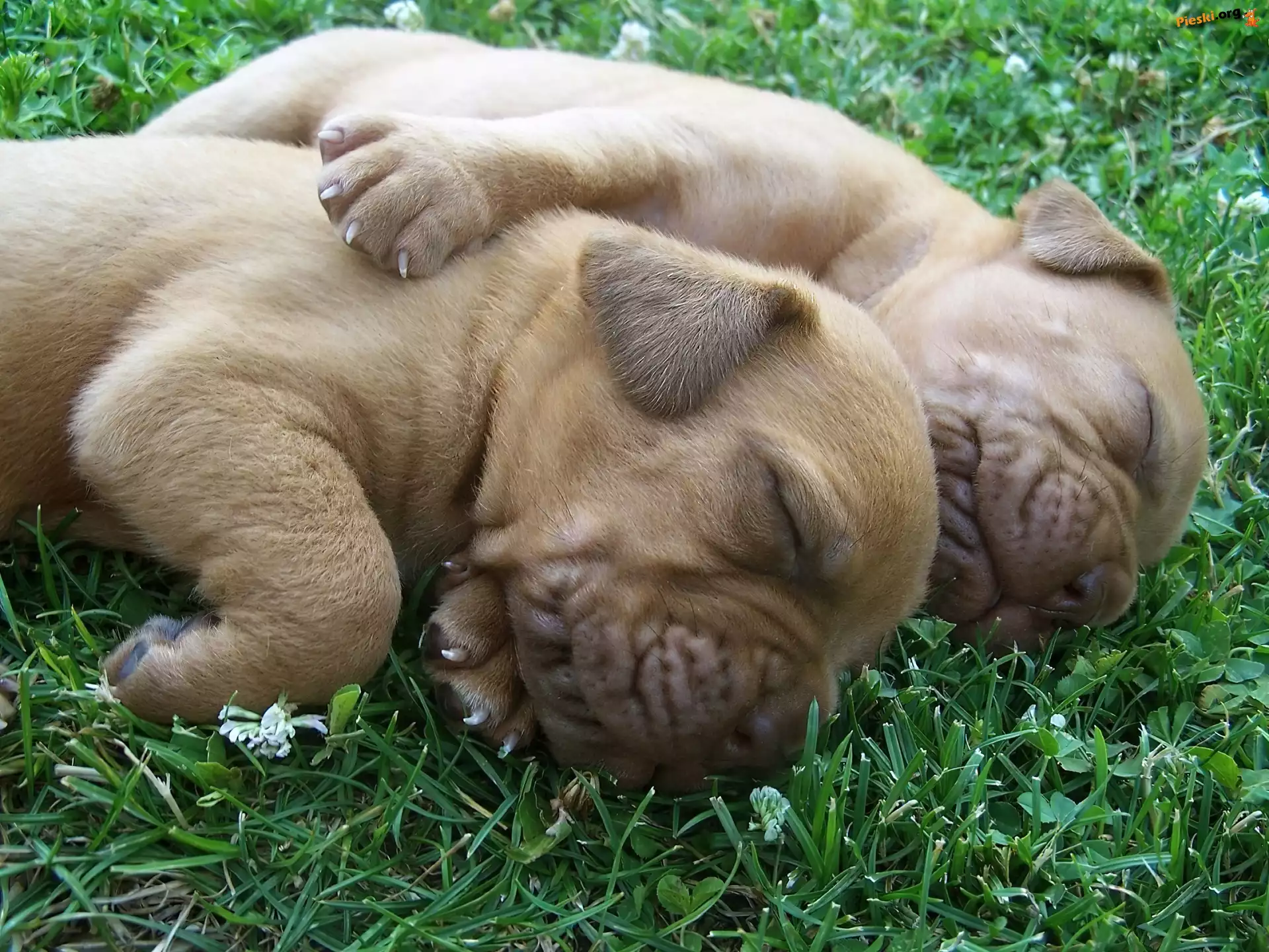 Dog de Bordeaux, Trawa, Dwa, Szczeniaczki