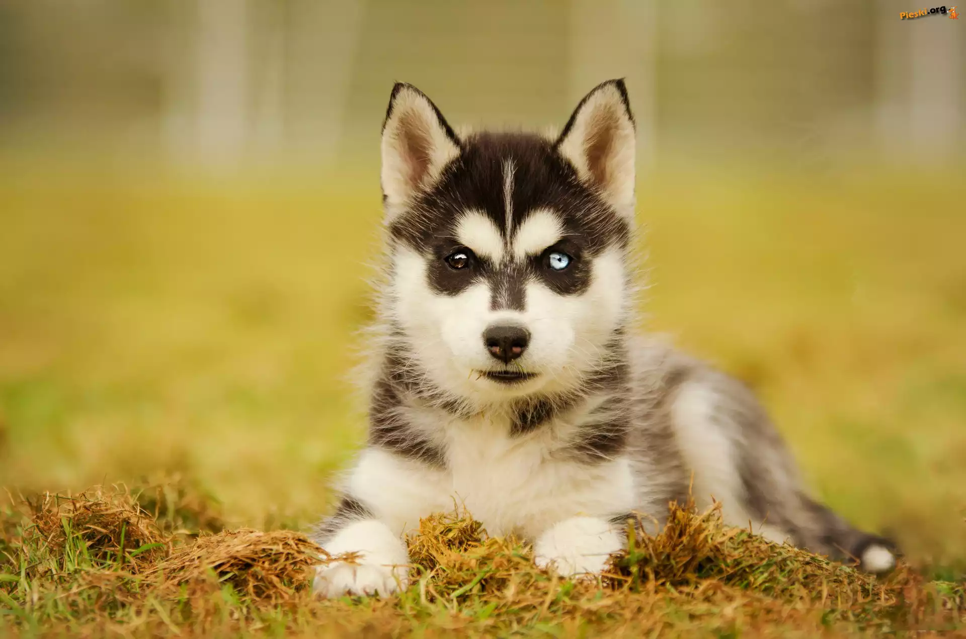 Szczeniak, Siberian husky, Ściółka, Pieski