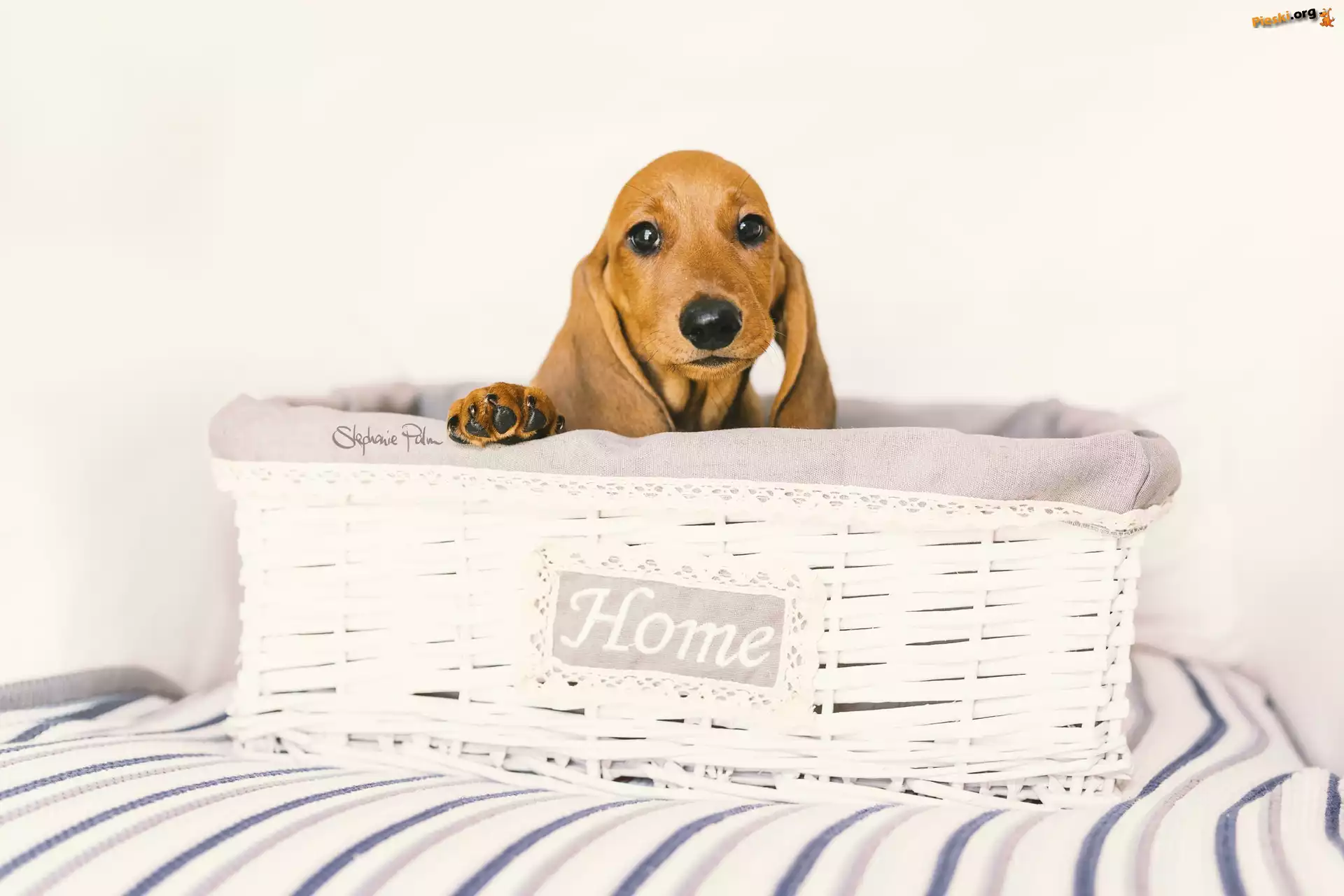 Szczeniak, Pies, Jamnik, Kosz, Pieski