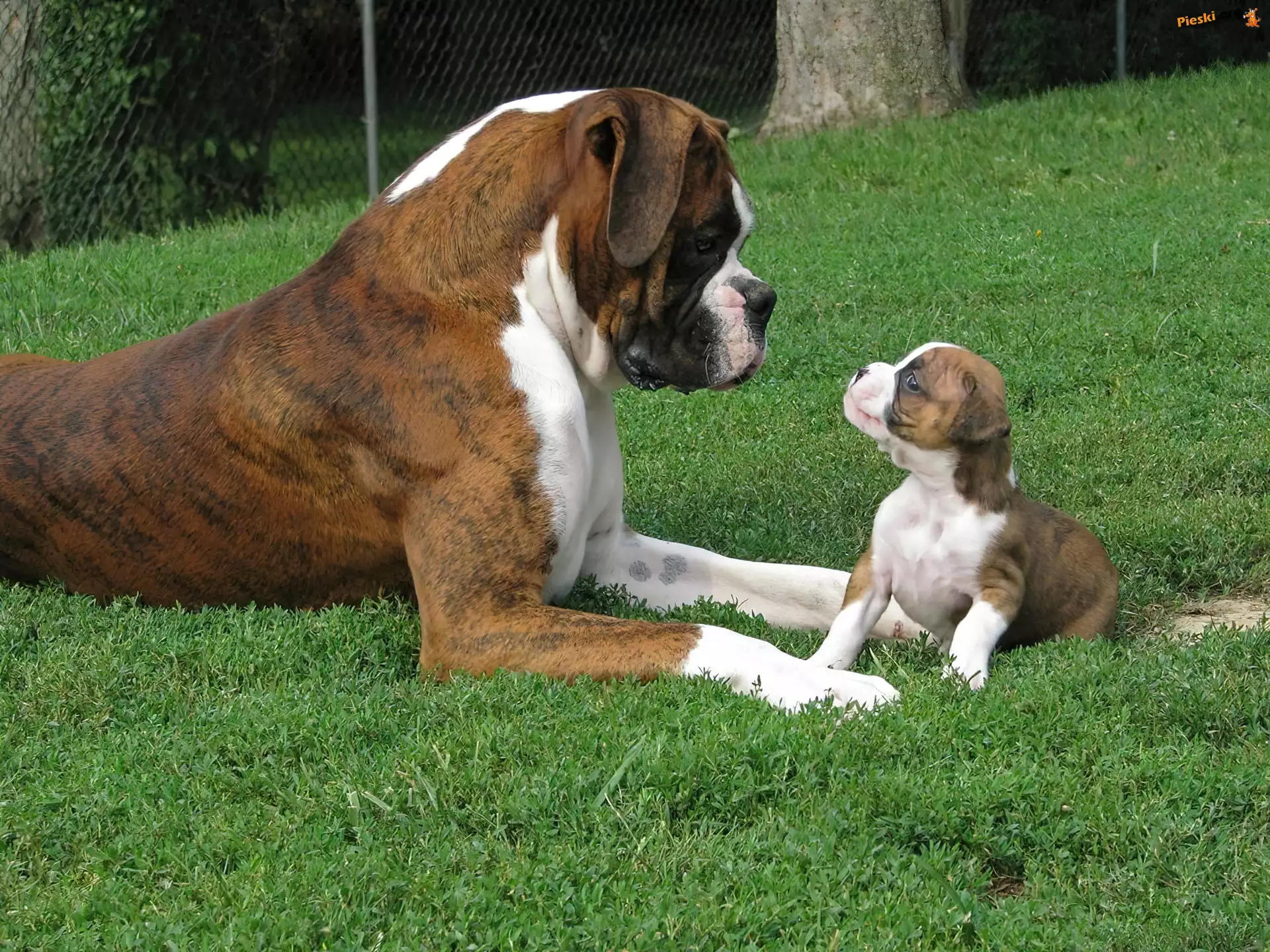 Trawa, Szczeniak, Bokser, Matka, Pieski