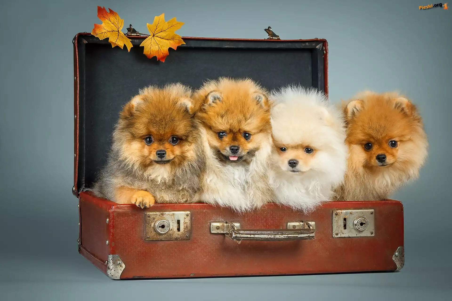 Szpice, Cztery, Pieski, Walizka, Pieski