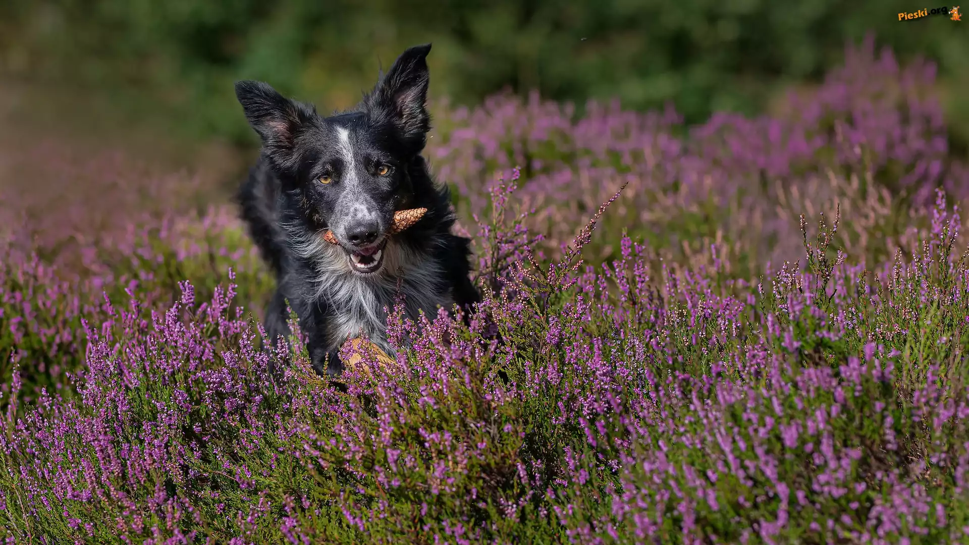 Szyszka, Pies, Border collie, Wrzosy, Pieski
