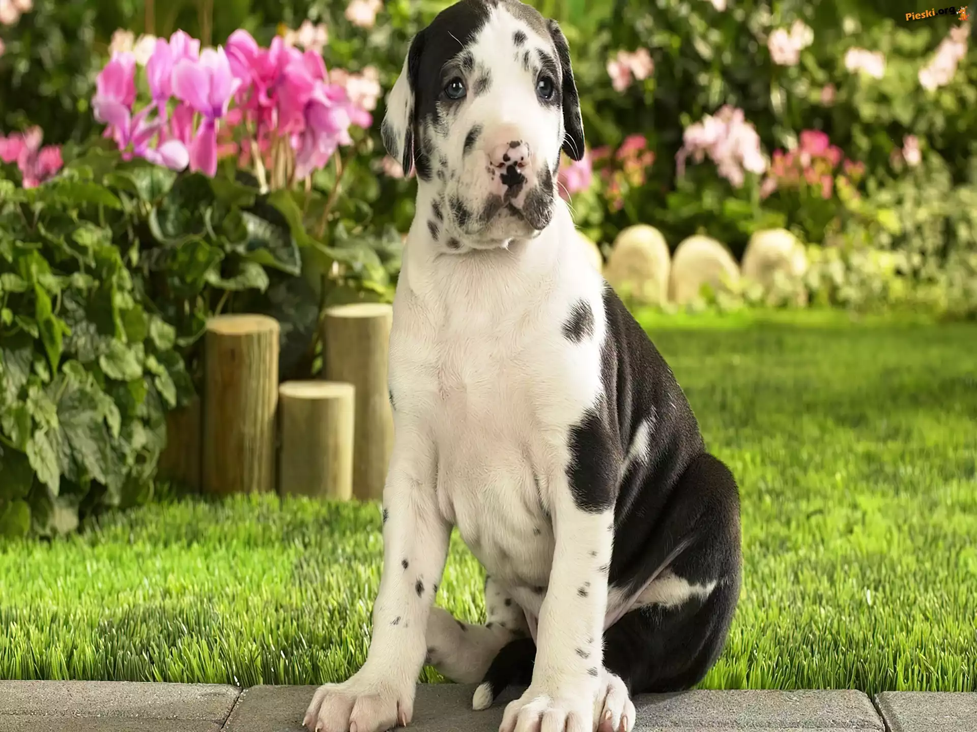 Trawa, Dog, Młody, Niemiecki, Kwiaty