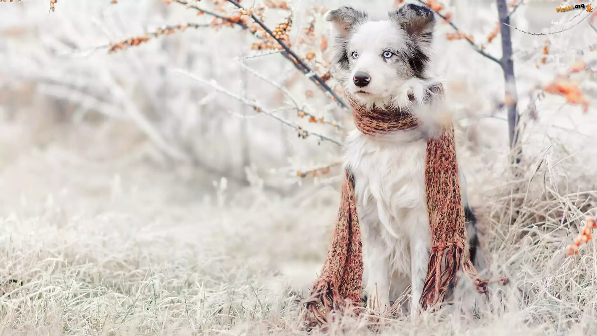 Pies, Trawa, Szadź, Border collie, Szalik, Rośliny