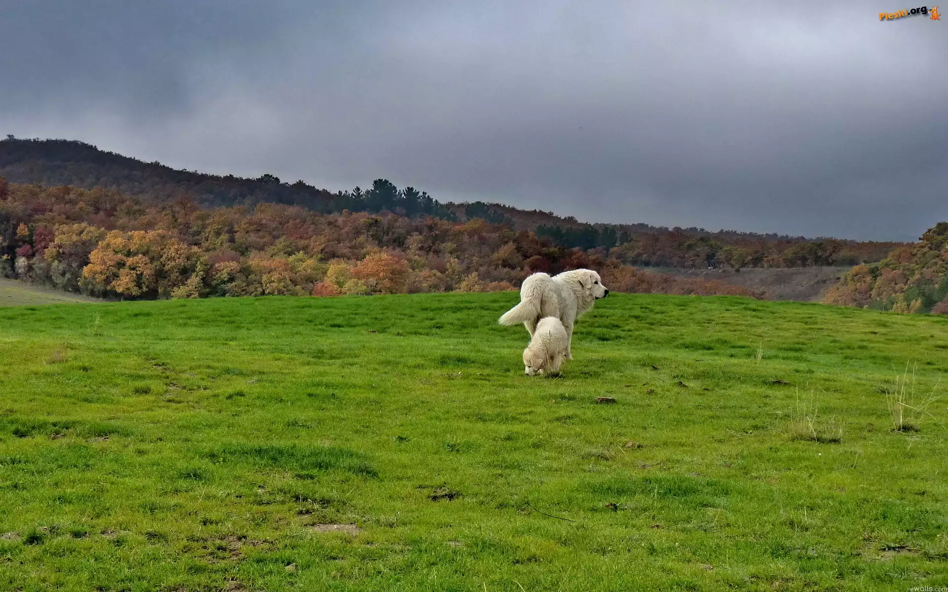 Trawa, Dwa, Pieski, Niebo, Pieski