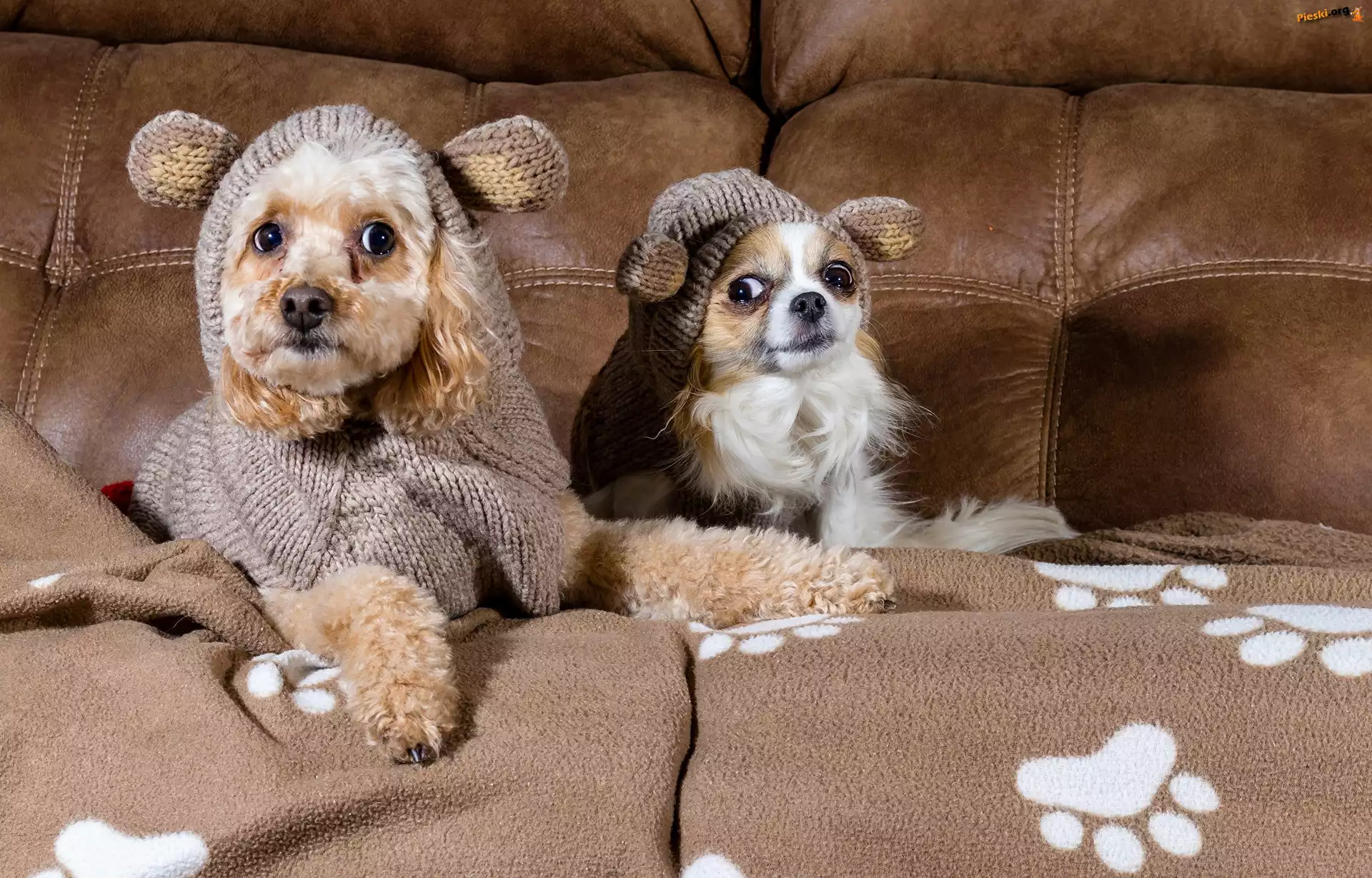 Ubranka, Pudel, Chihuahua, Sofa, Pieski