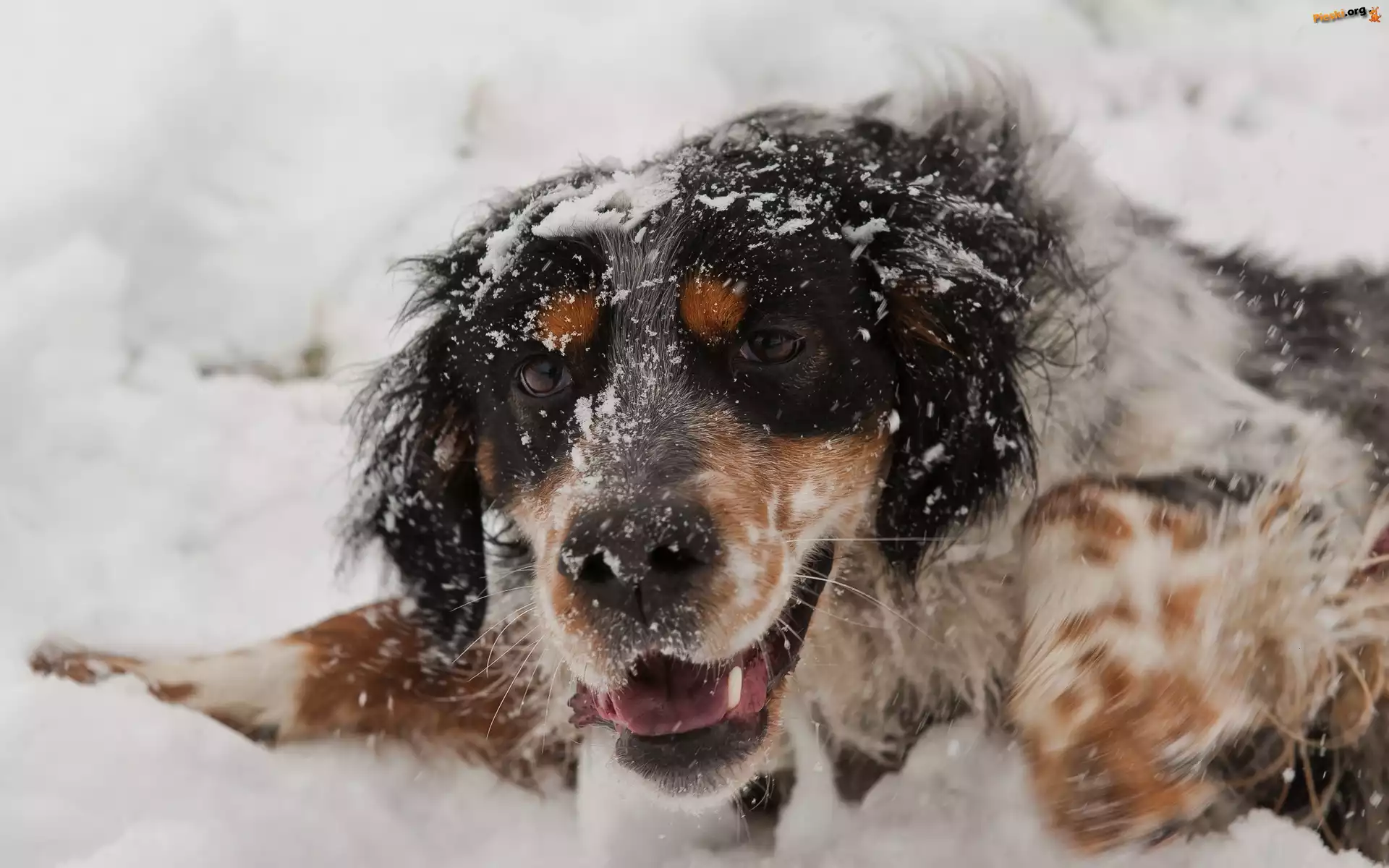 Zima, Pies, Mordka, Śnieg, Pieski